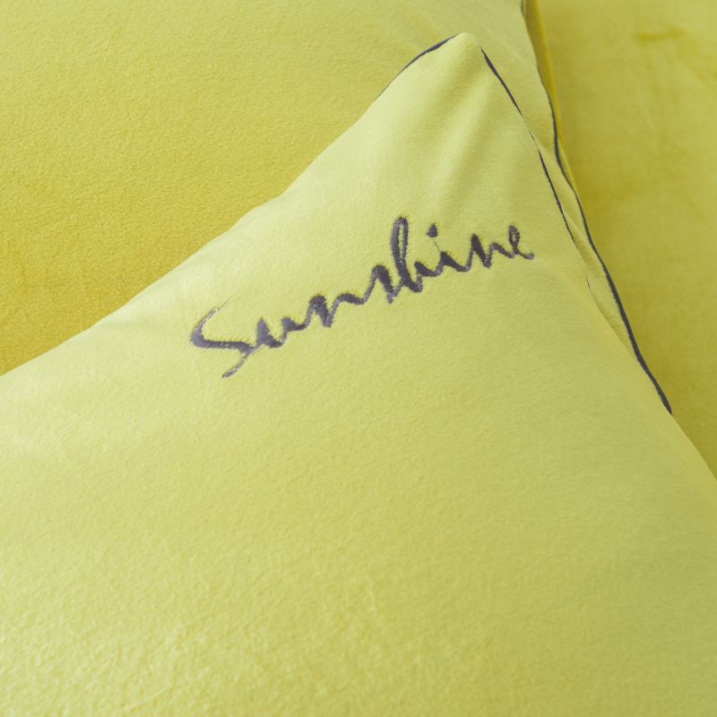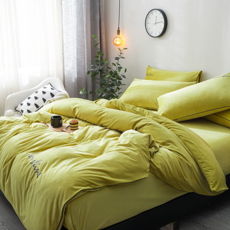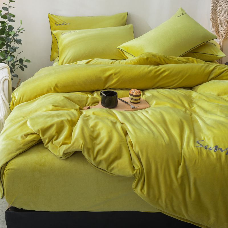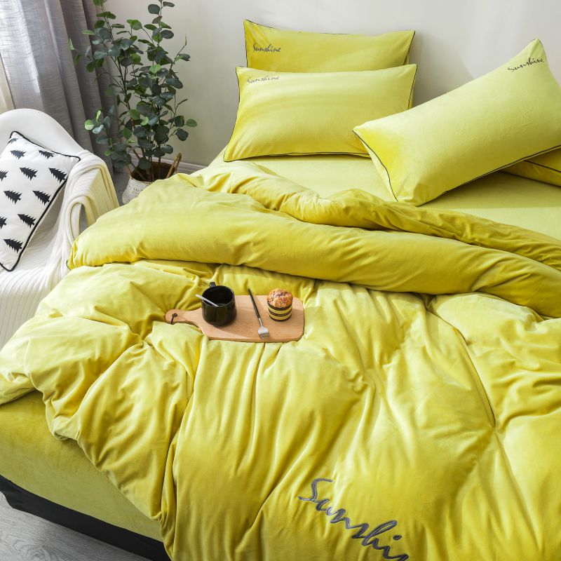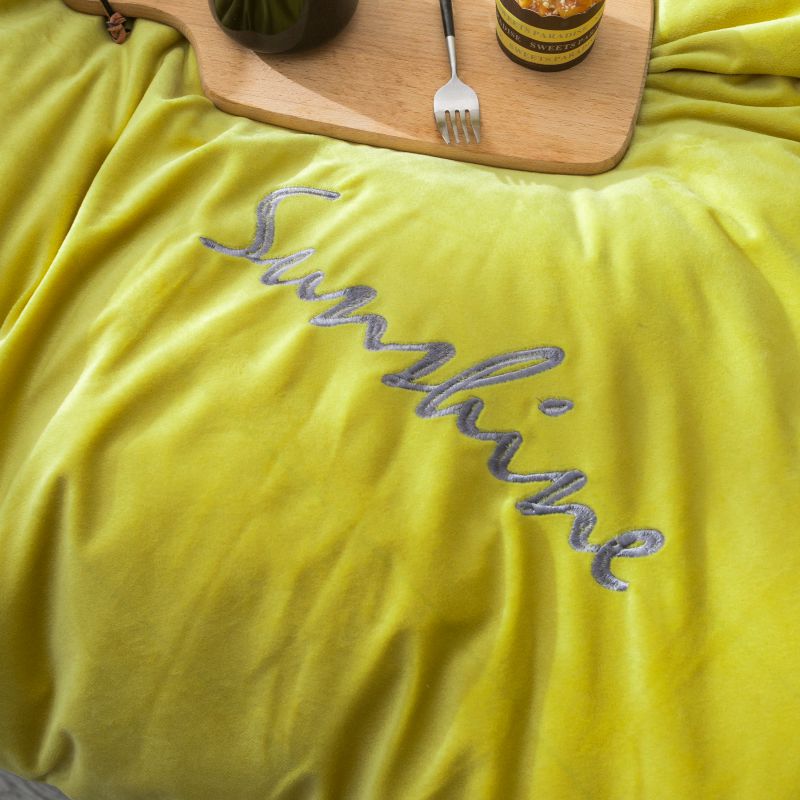 尚品本色正版授权 纯色刺绣水晶绒保暖四件套 玉米黄