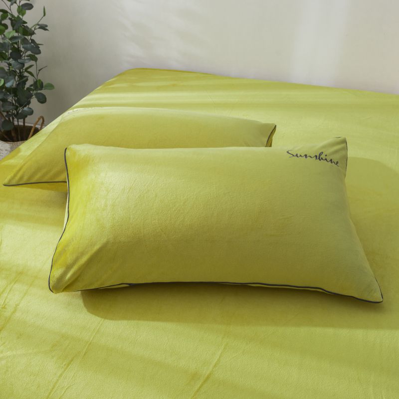 商品名称:尚品本色正版授权 纯色刺绣水晶绒保暖四件套 玉米黄
