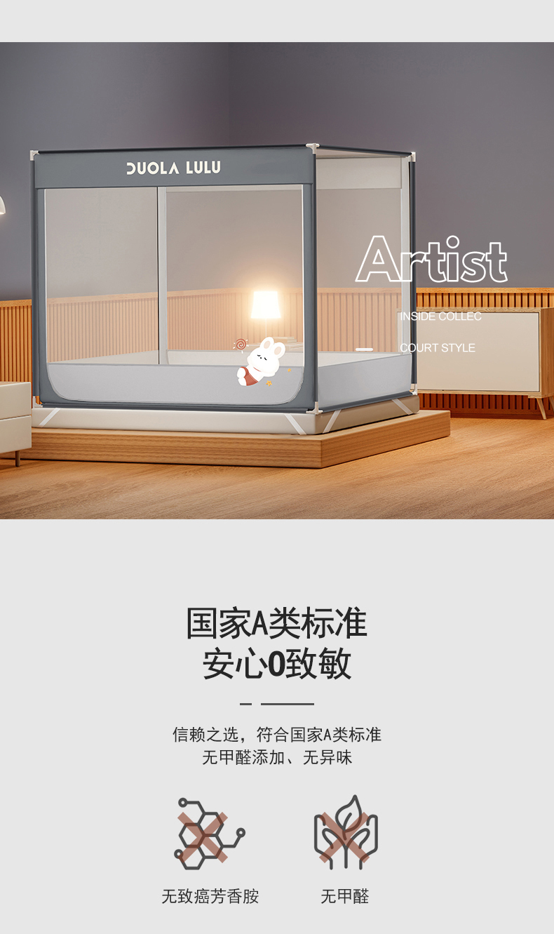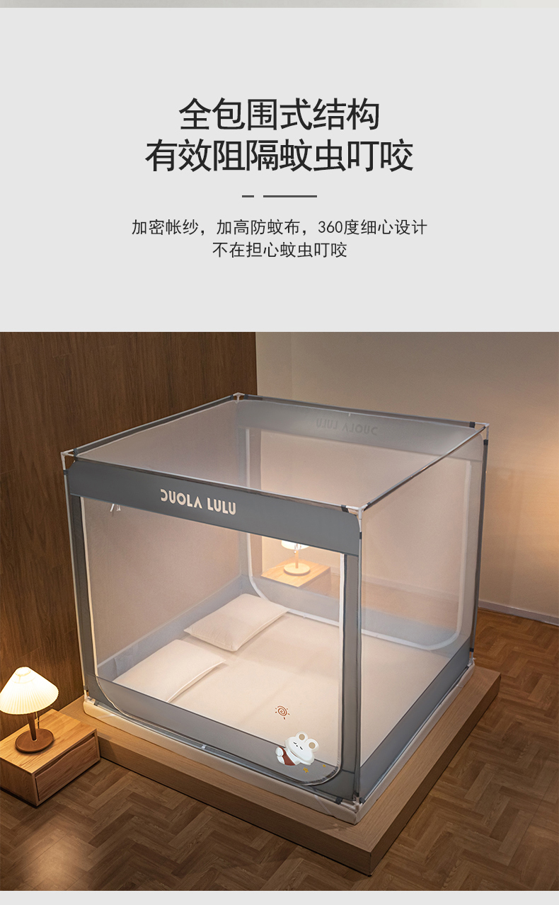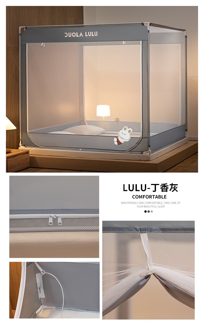 当前位置: 91家纺网 > 商品网购 > 床上用品 > 蚊帐 > 坐床式蚊帐 > 佳梦家纺 2023新款方顶烫画坐床蚊帐 LULU-丁香灰