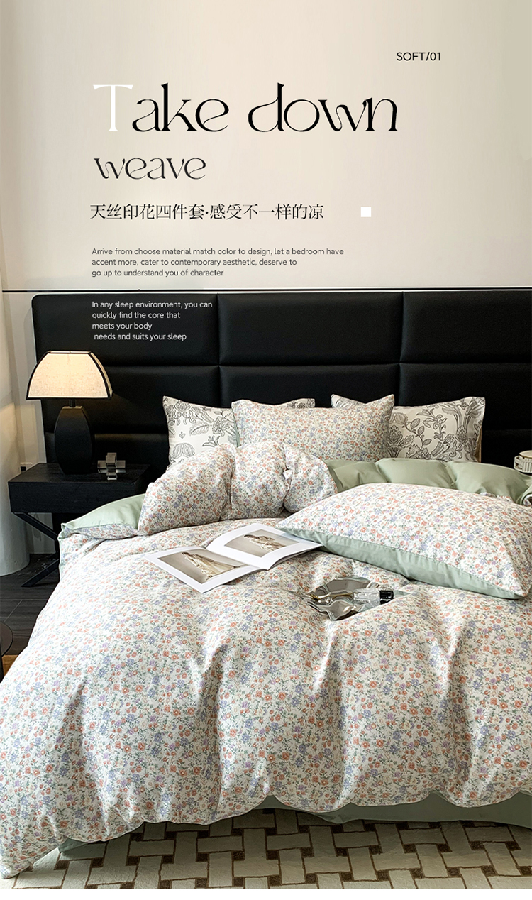 (总)澳萝拉 2023新款天丝印花四件套,芳馨,菲扬,江夏,恋馨,柠染-粉,浅语初开-米,叶飘,月韵