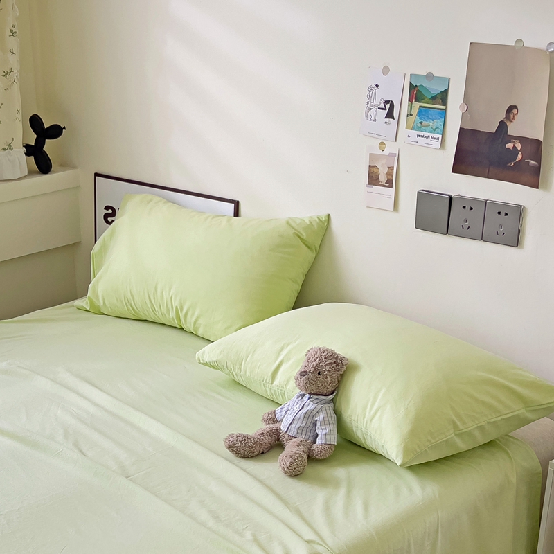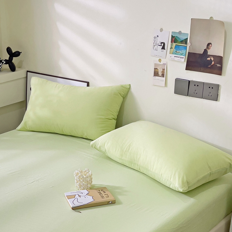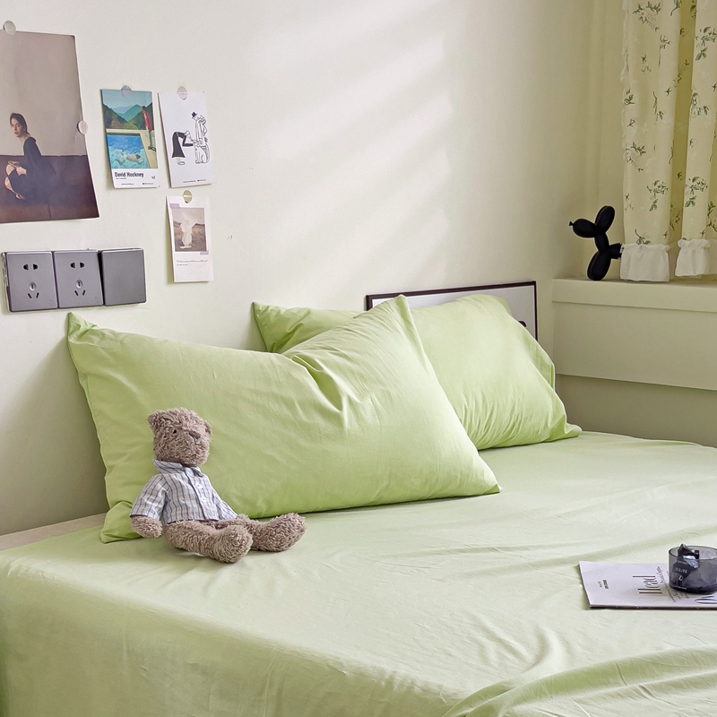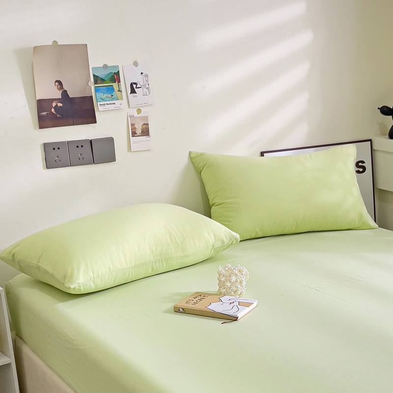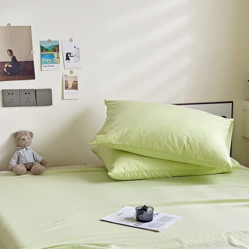 六巷胡同 2023新款32支全棉纯色水洗棉单枕套 青提绿