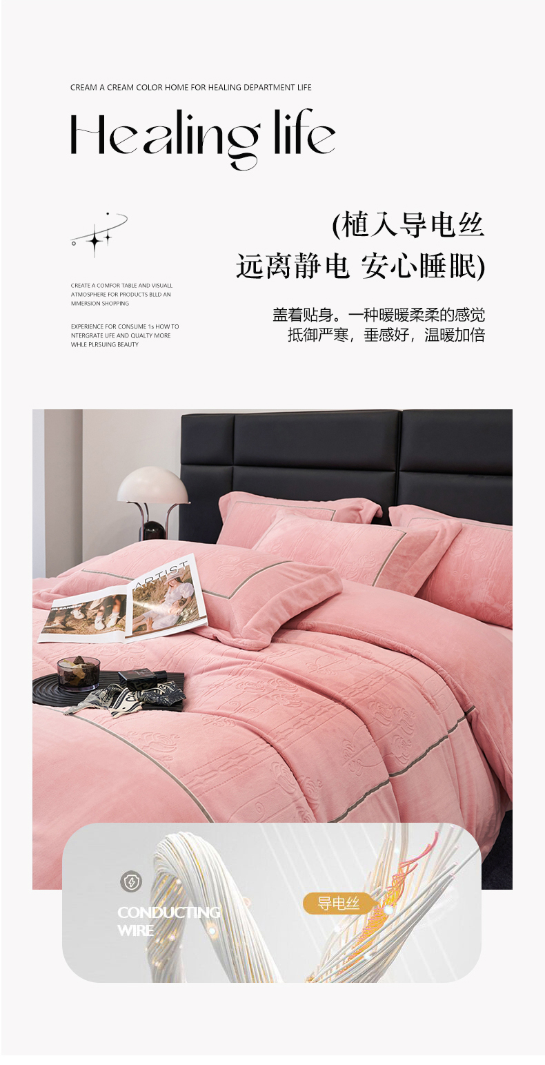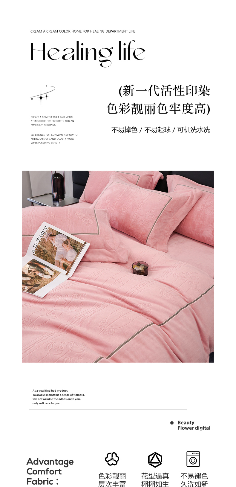 榻尚家居 2023新款秋冬暖绒Queen系列-玫瑰花园 温柔粉