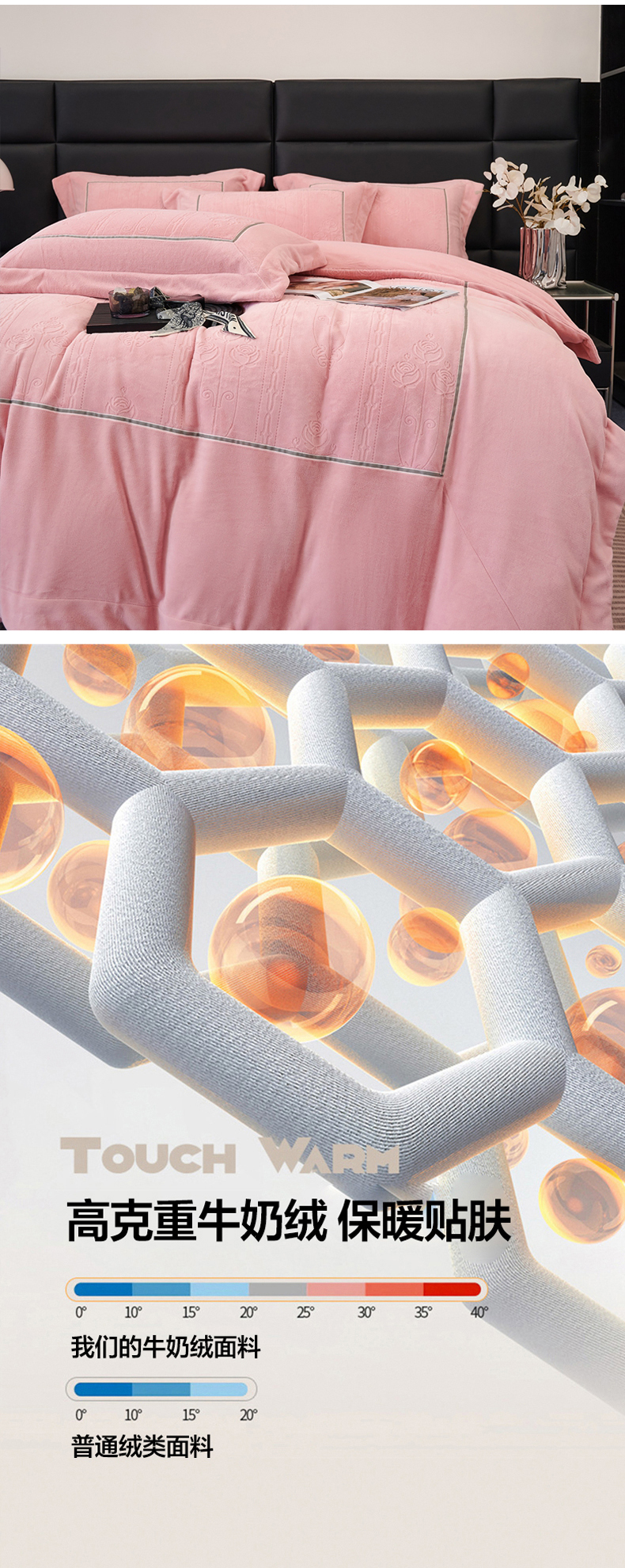 (总)榻尚家居 2025新款婴肤牛奶绒拼色工艺绣花四件套-米菲,米菲-典灰,米菲-粉橘,米菲-米白,米菲-暖驼,米菲-藤紫