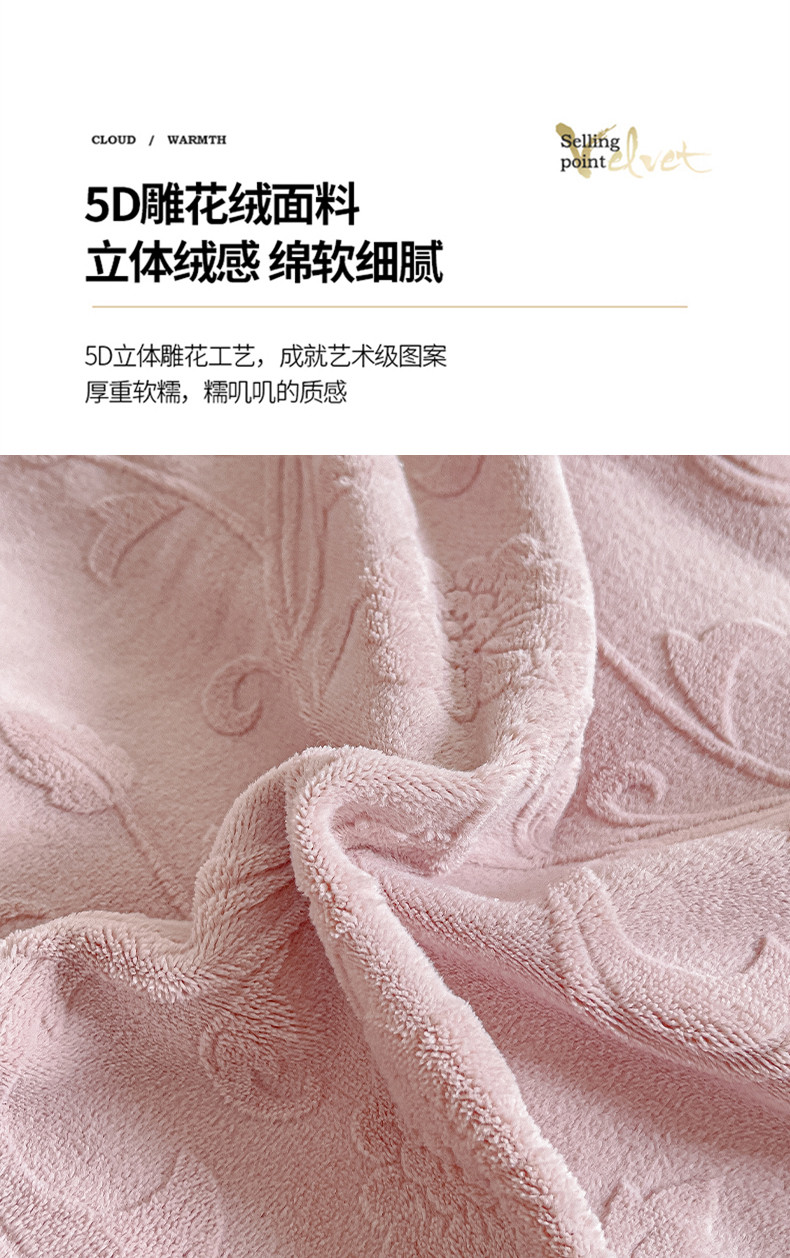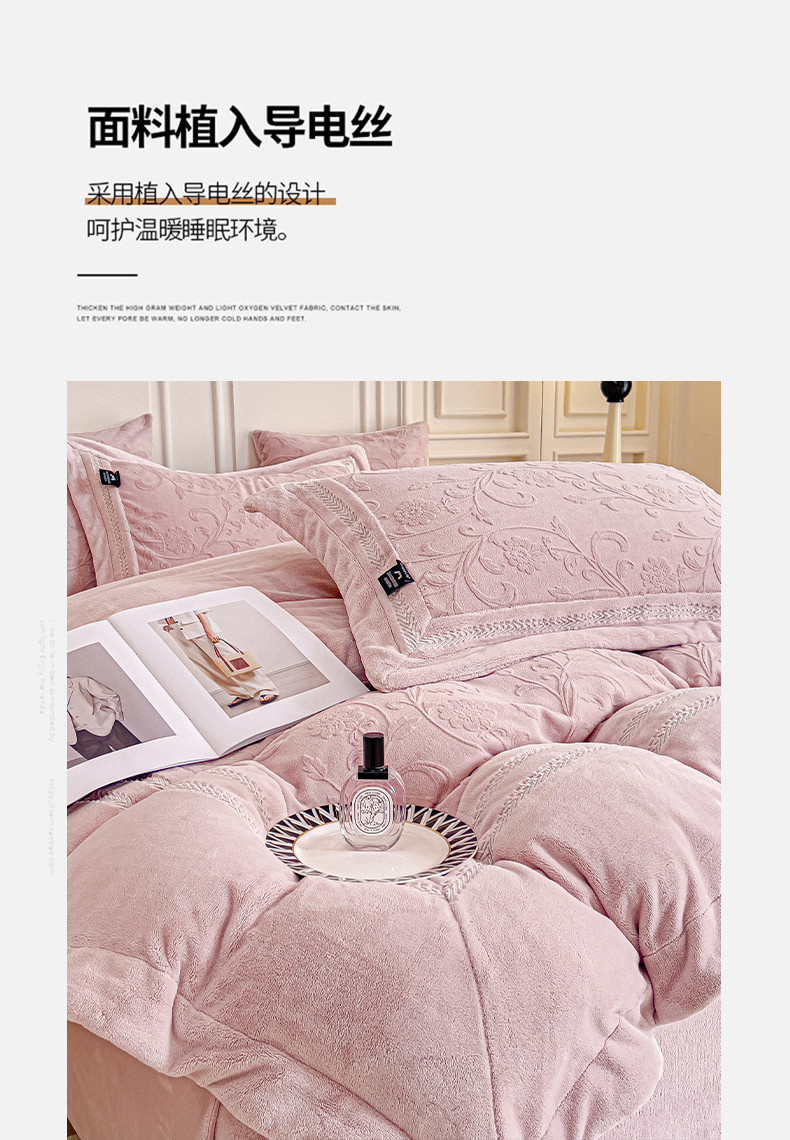 商品名称:品家居 2025新款5D雕花牛奶绒绣花大拼角四件套-岁月静好 粉色
