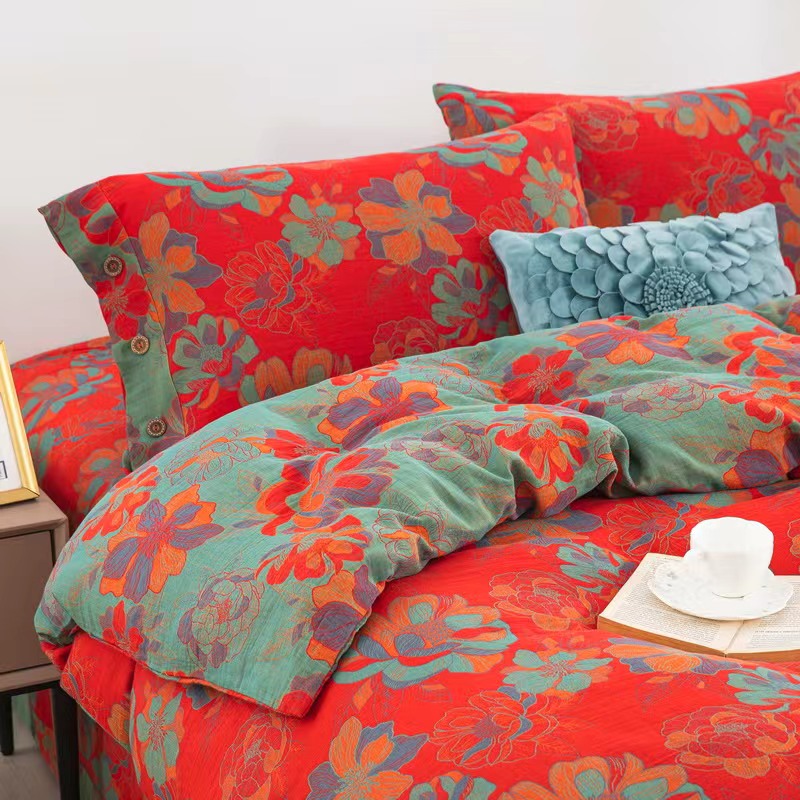 双层纱家居 2024新款新款夏被四件套 花开富贵夏被四件套