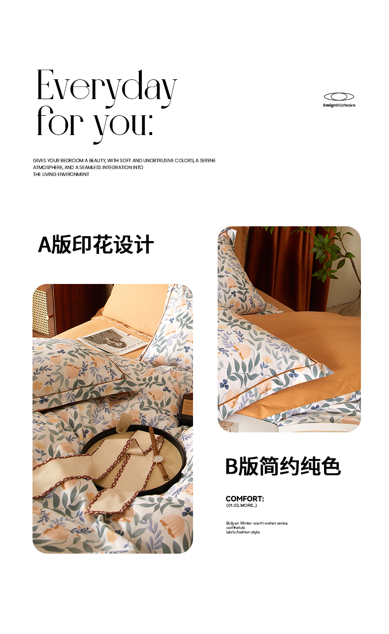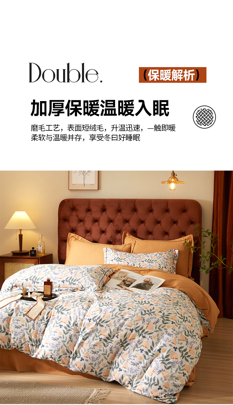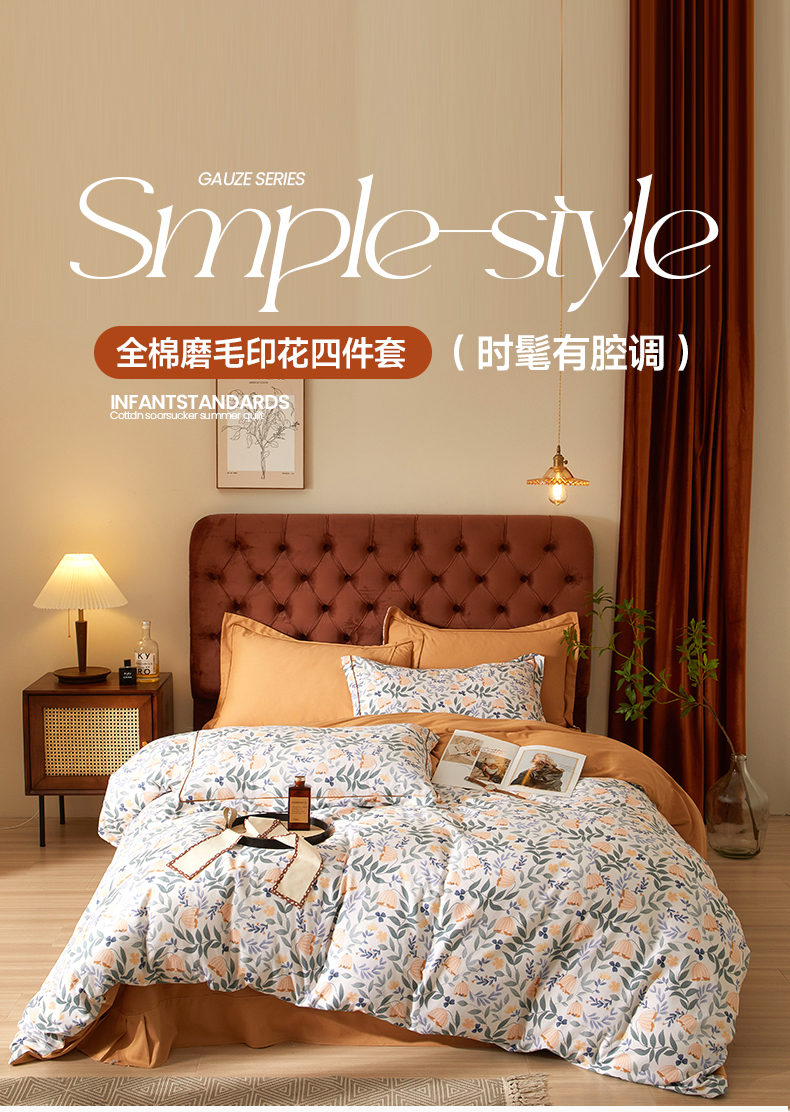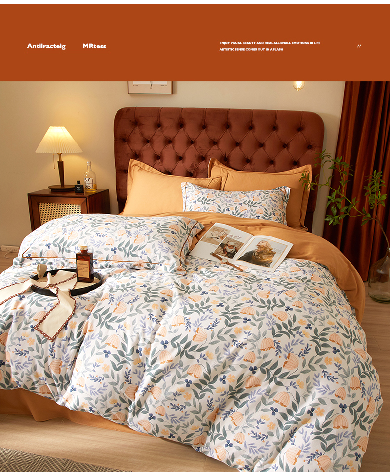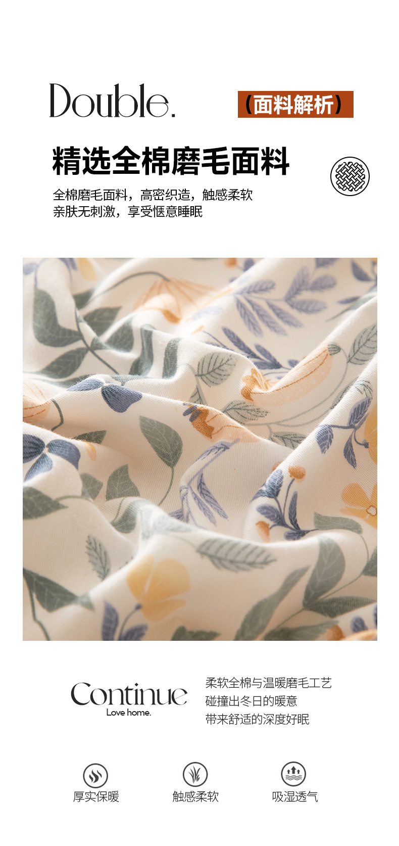 当前位置: 91家纺网 > 商品网购 > 床品套件 > 四件套 > 全棉普通四件套 > 沐白家居 2024新款全棉生态磨毛印花四件套系列 春派
