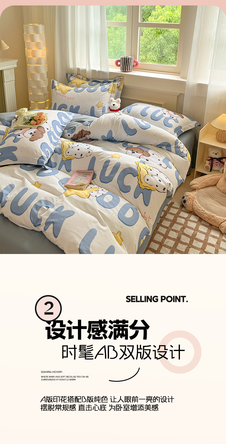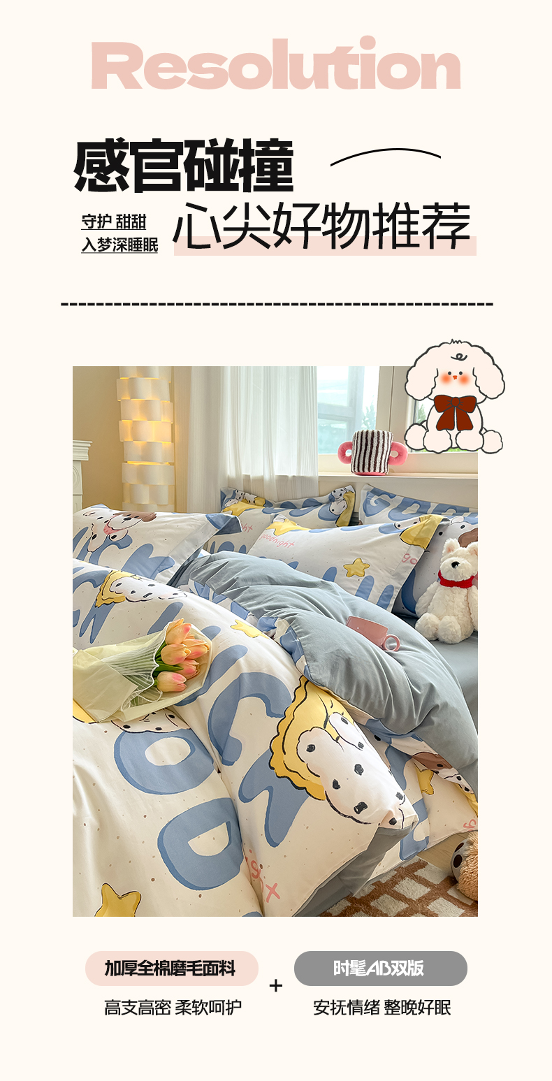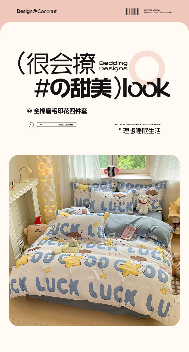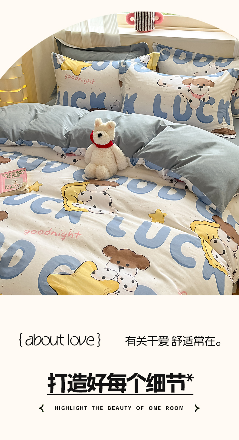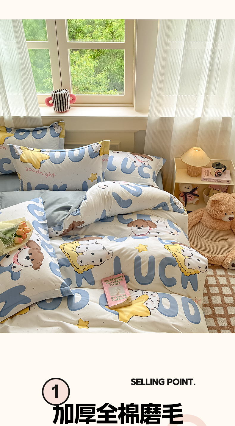 当前位置: 91家纺网 > 商品网购 > 床品套件 > 四件套 > 全棉普通四件套 > 涵宸家纺 2024新款加厚全棉磨毛印花四件套--罗马系列 A字母小狗