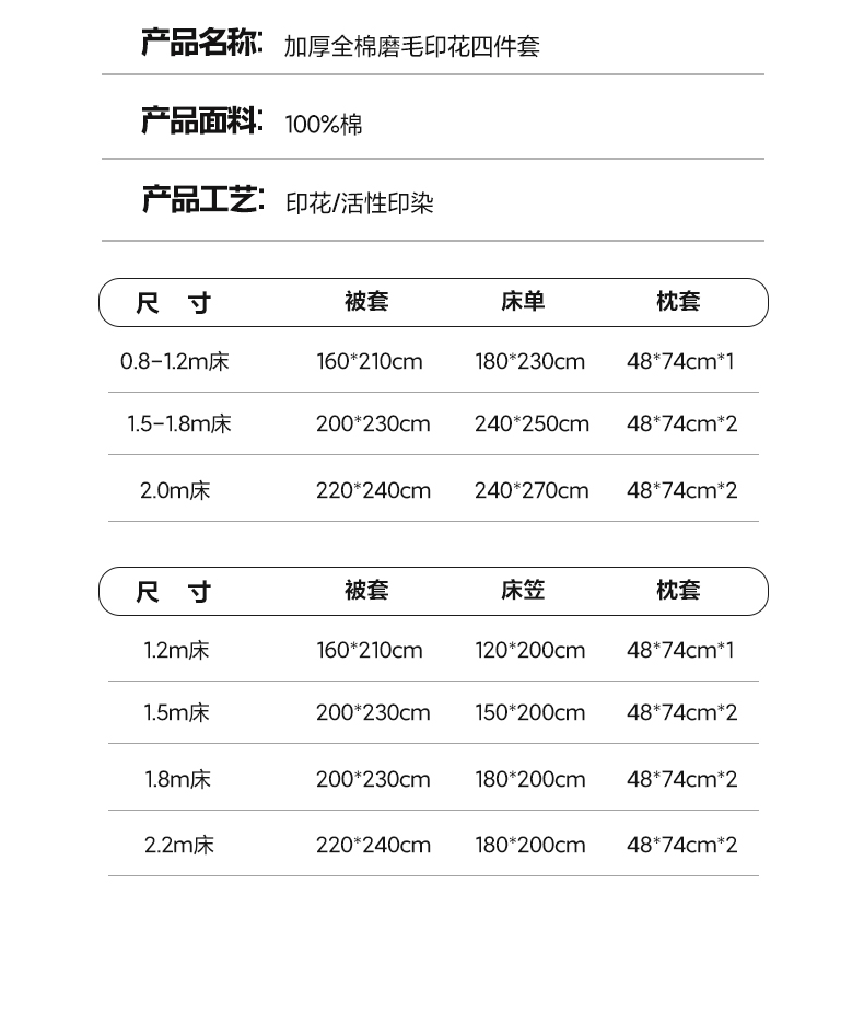 1.8m床笠款被套加大四件套 | ¥140.00 |