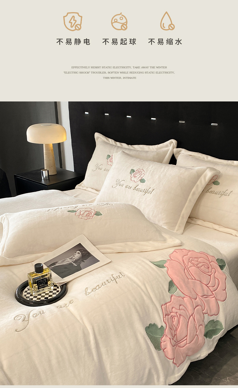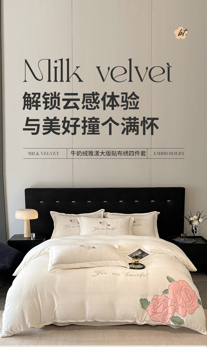 当前位置: 91家纺网 > 商品网购 > 床品套件 > 四件套 > 牛奶绒四件套 > 你好美丽 2025新款A类200克牛奶绒雅漾大版贴布绣四件套 雅漾白