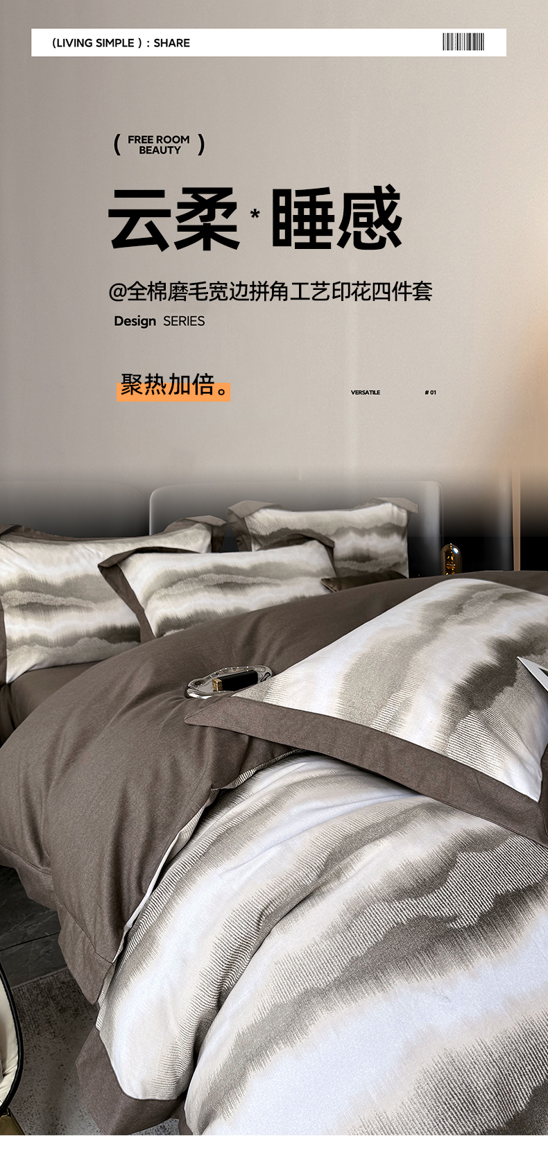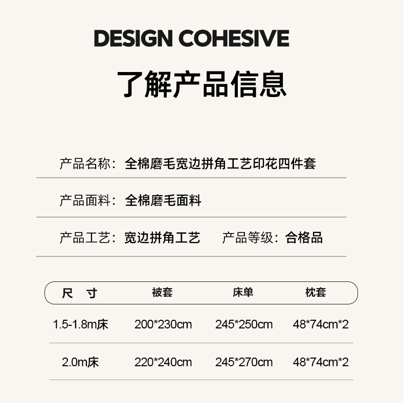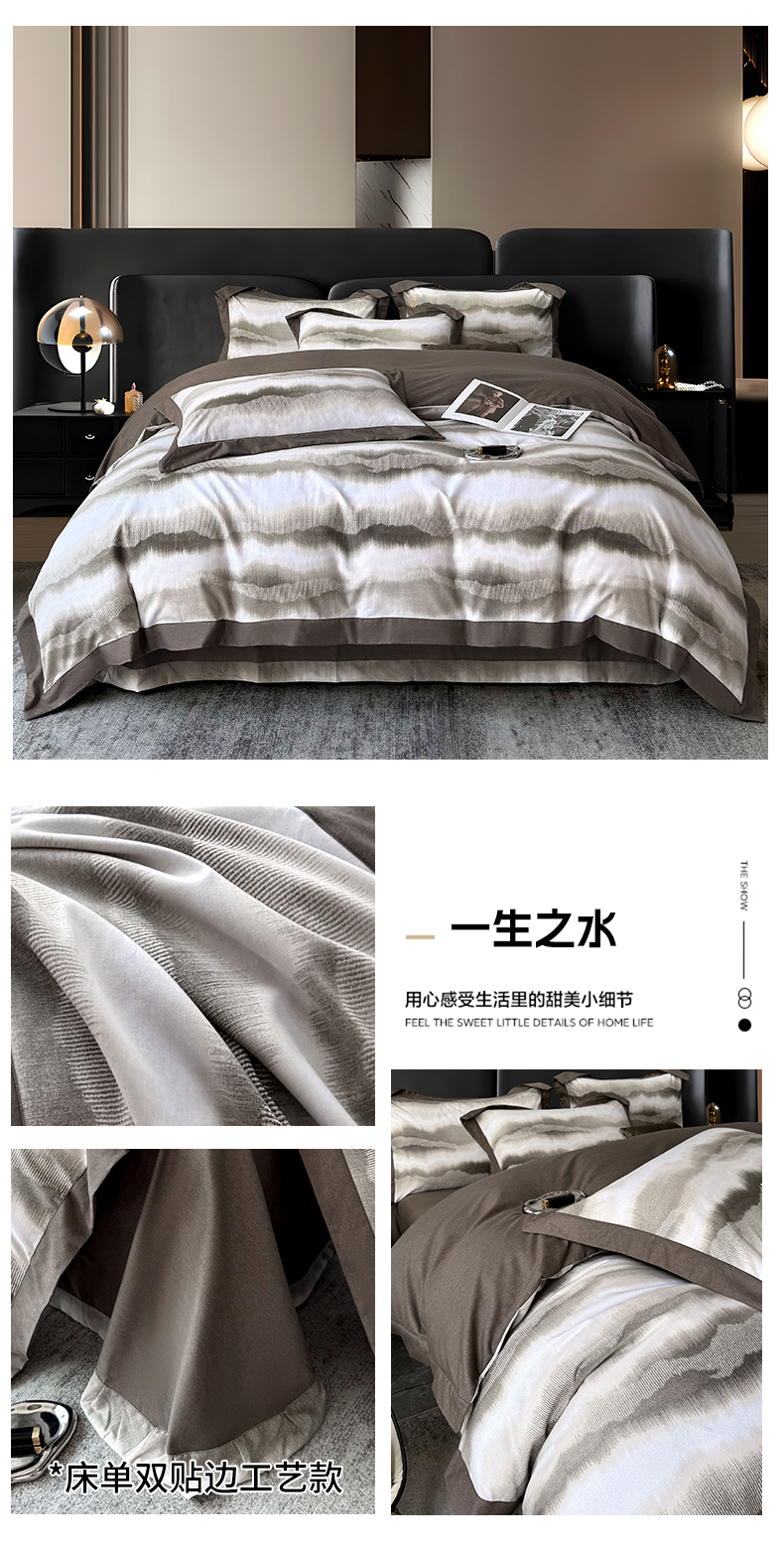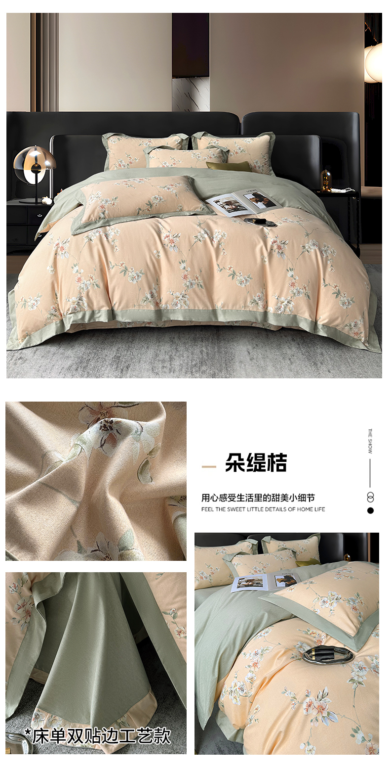 商品名称:朵希曼 2026新款全棉大宽边拼角磨毛四件套 一生之水
