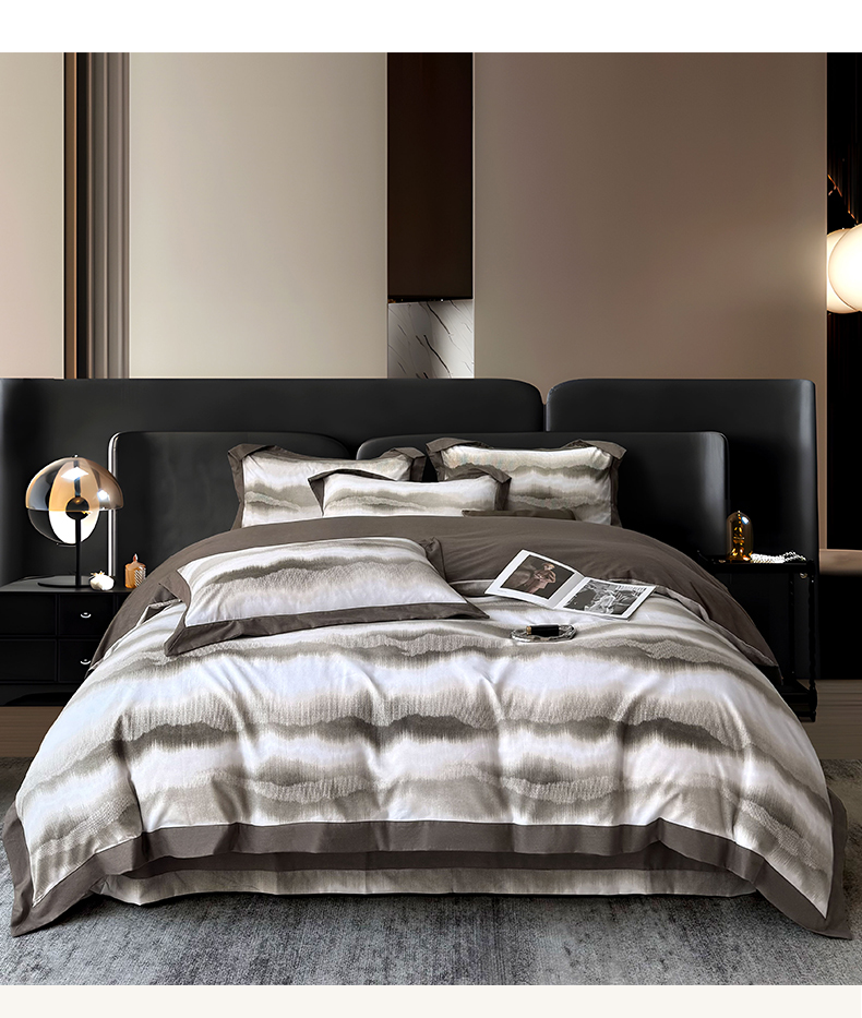 朵希曼 2026新款全棉大宽边拼角磨毛四件套 一生之水