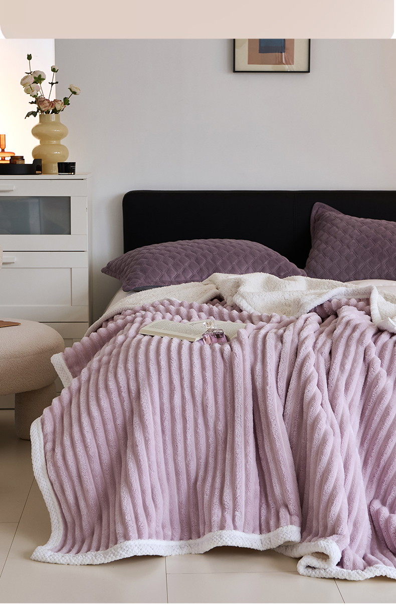金喜 2024新款立体抽条提花双面绒毯多用途毛毯办公室午睡毯家用毛毯被 萝兰深紫