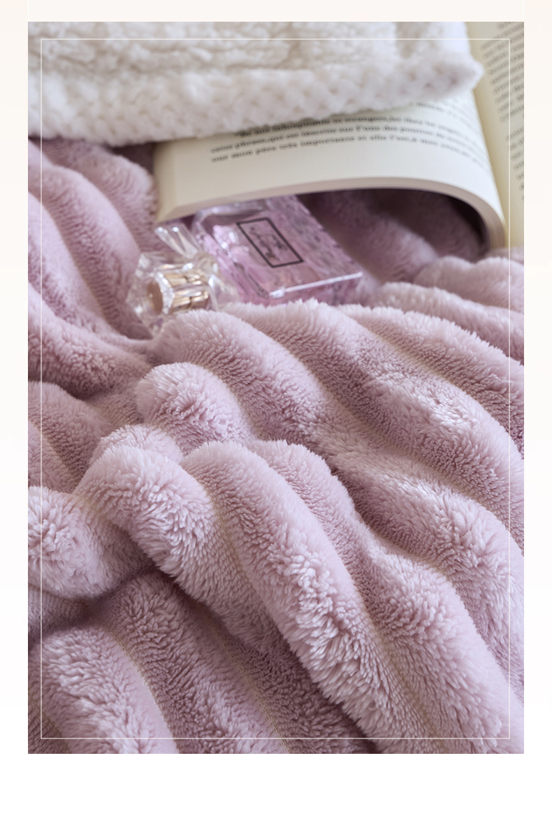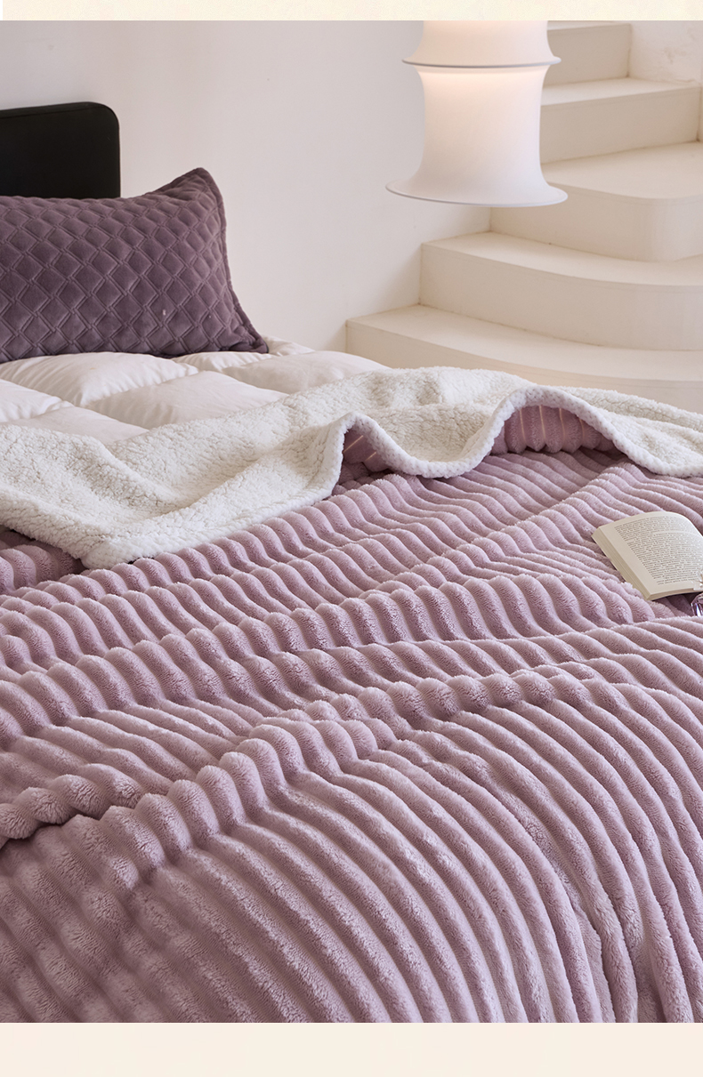 商品名称:金喜 2024新款立体抽条提花双面绒毯多用途毛毯办公室午睡毯家用毛毯被 萝兰深紫