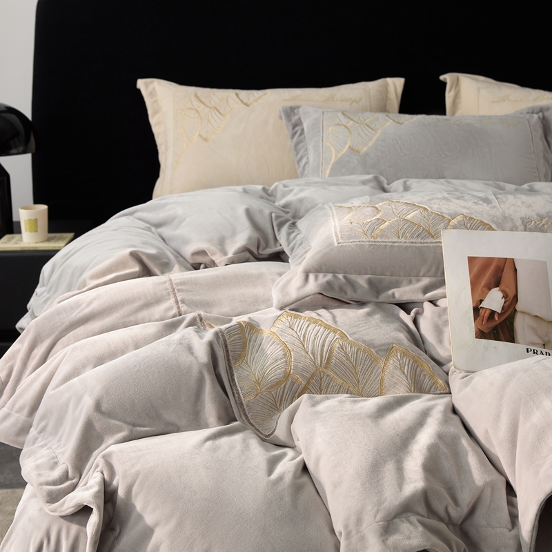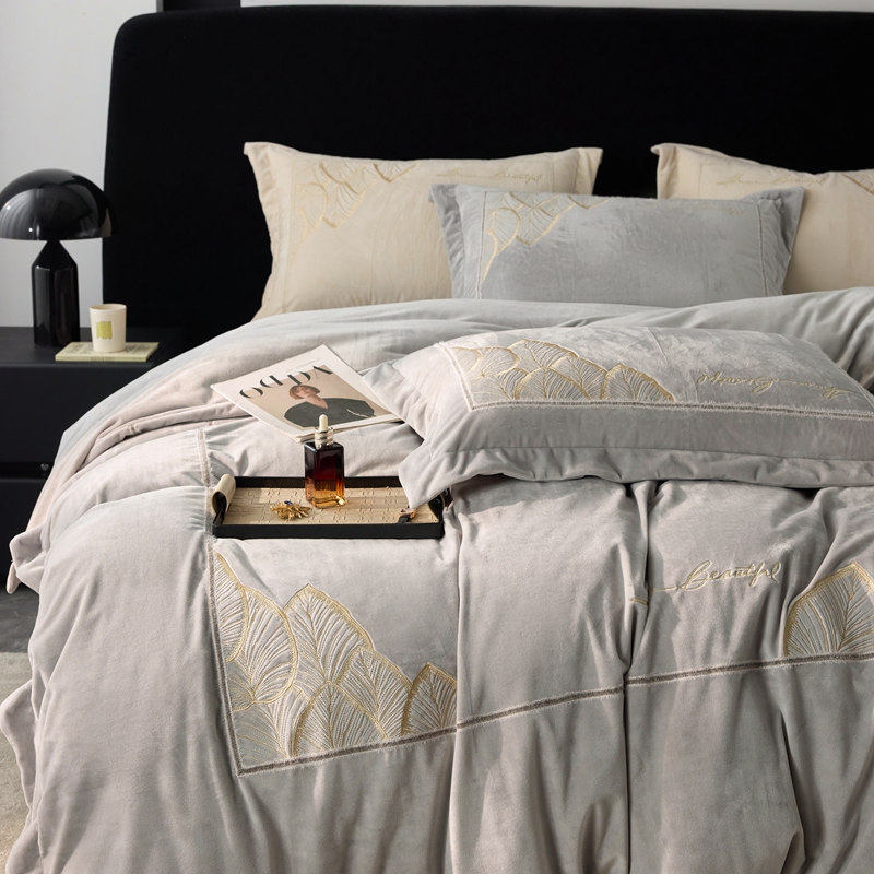 榻尚家居 2024新款绣花加厚婴肤绒四件套--秋语 秋语 灰