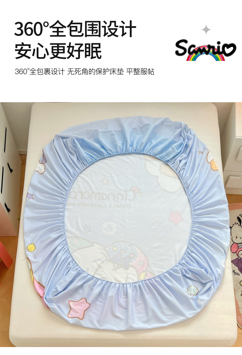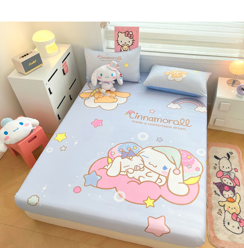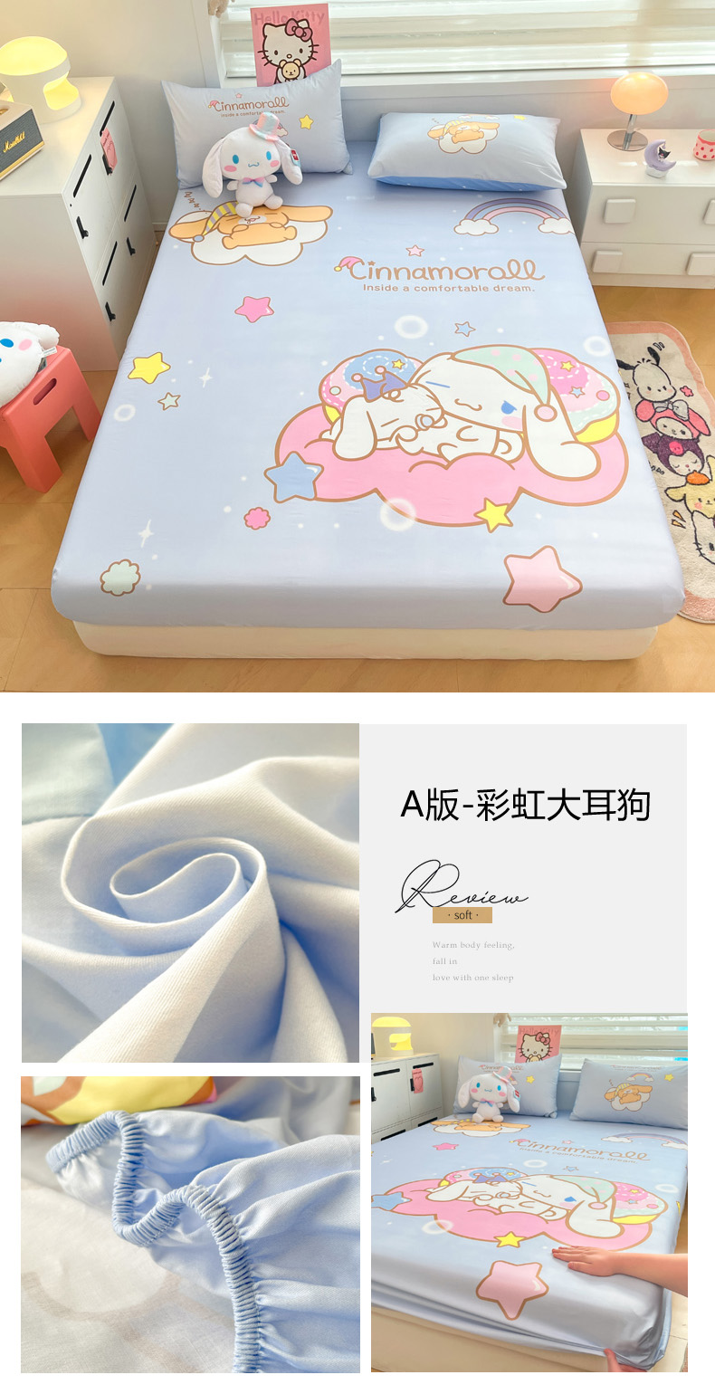 暮思家居 2025新款正版授权三丽鸥大阪全棉数码印花纯棉单品床笠(第二批) A版-彩虹大耳狗