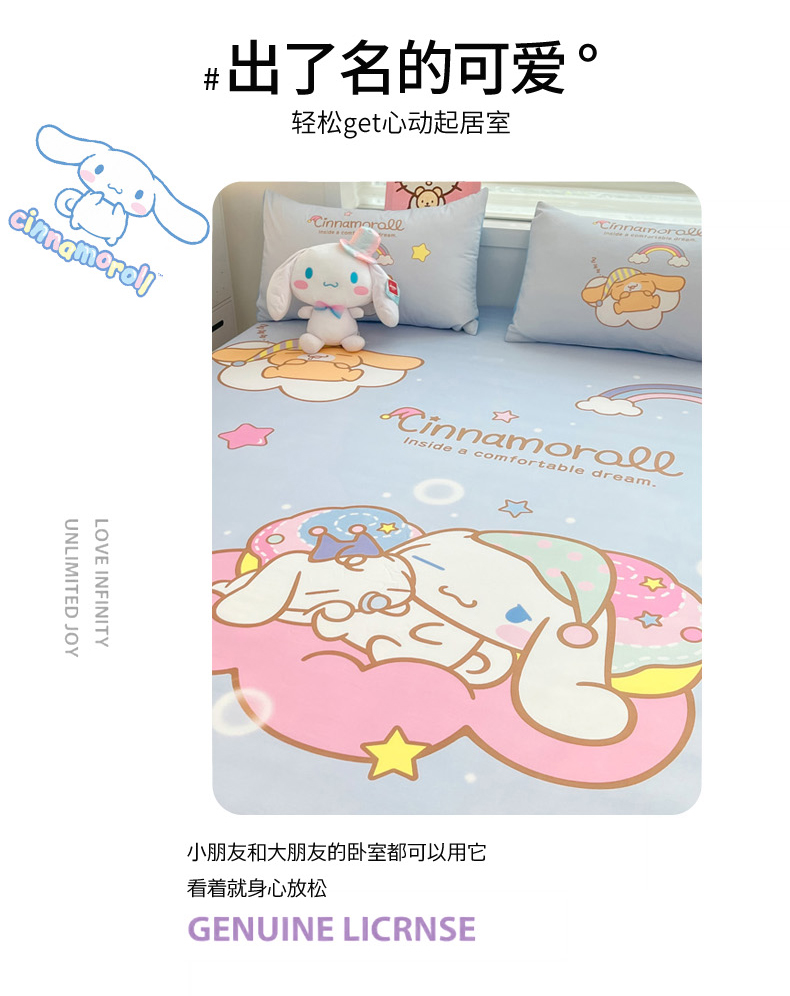 (总)暮思家居 2026新款正版授权三丽鸥大版全棉纯棉数码印花纯棉四件套系列-第二批(专版花型),大版-小兔美乐蒂,大版-公主美乐蒂,大版-蝴蝶结KT,大版-礼物KT,大版-梦幻独角兽,大版-甜甜圈布丁狗,大版-晚安玉桂狗,大版-豹纹凯蒂猫,大版-香水KT,大版-小熊玉桂狗,大版-幸福KT猫