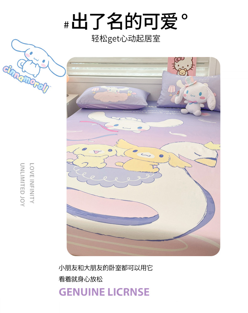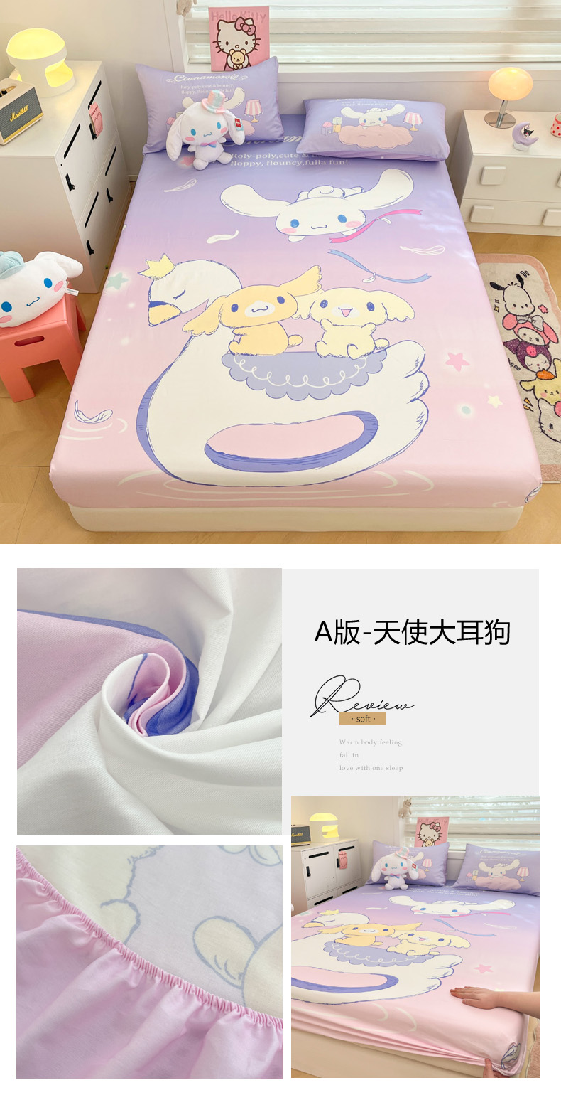 暮思家居 2025新款正版授权三丽鸥大阪全棉数码印花纯棉单品床笠(第二批) A版-天使大耳狗