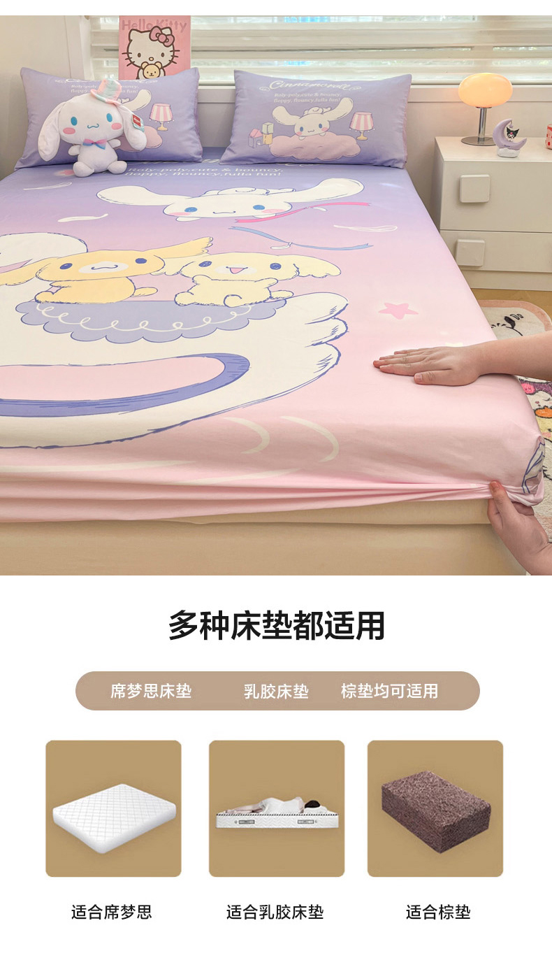 商品名称:暮思家居 2025新款正版授权三丽鸥大阪全棉数码印花纯棉单品床笠(第二批) A版-天使大耳狗