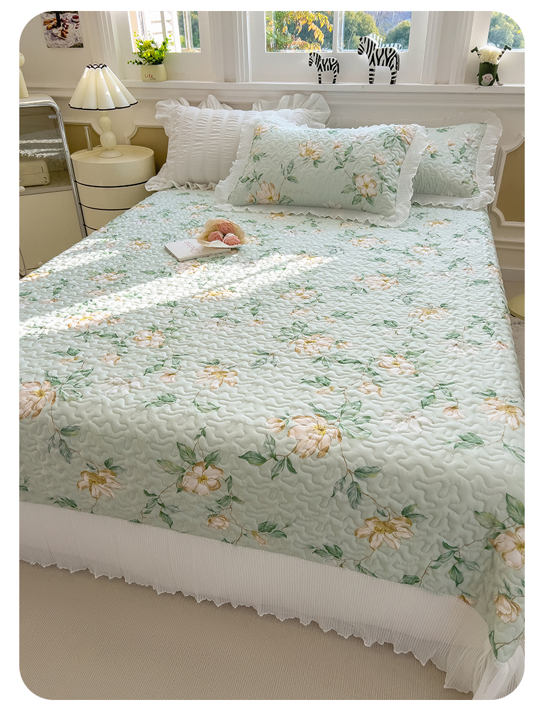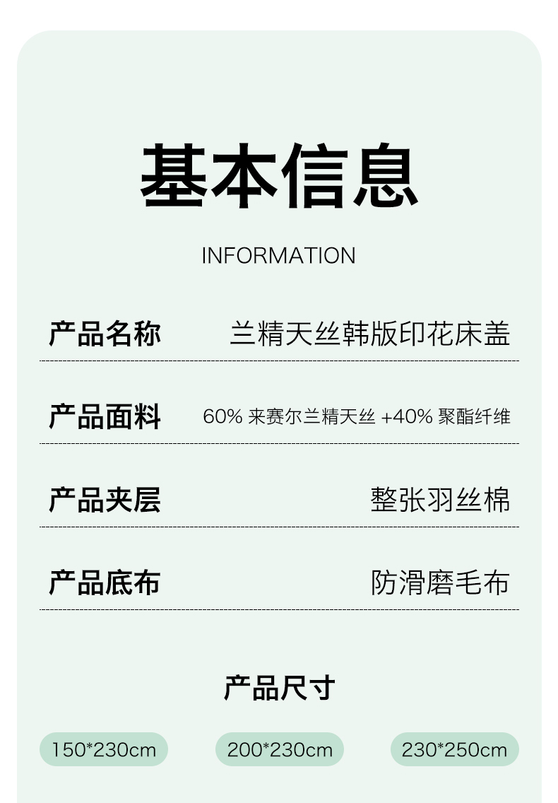 商品名称:兄弟坊 2025 莱赛尔兰精天丝韩版印花床盖床裙床褥 床盖-春晓