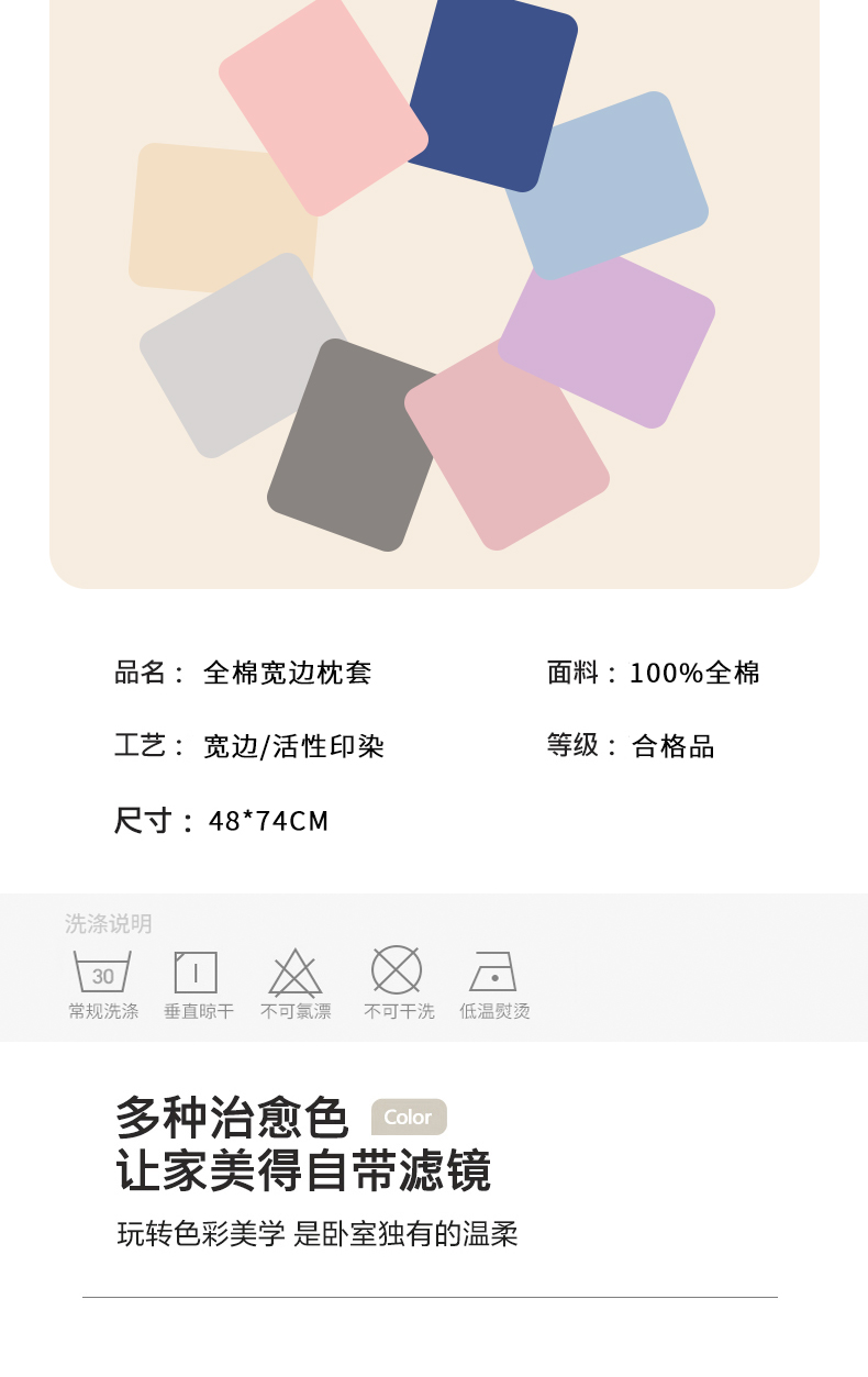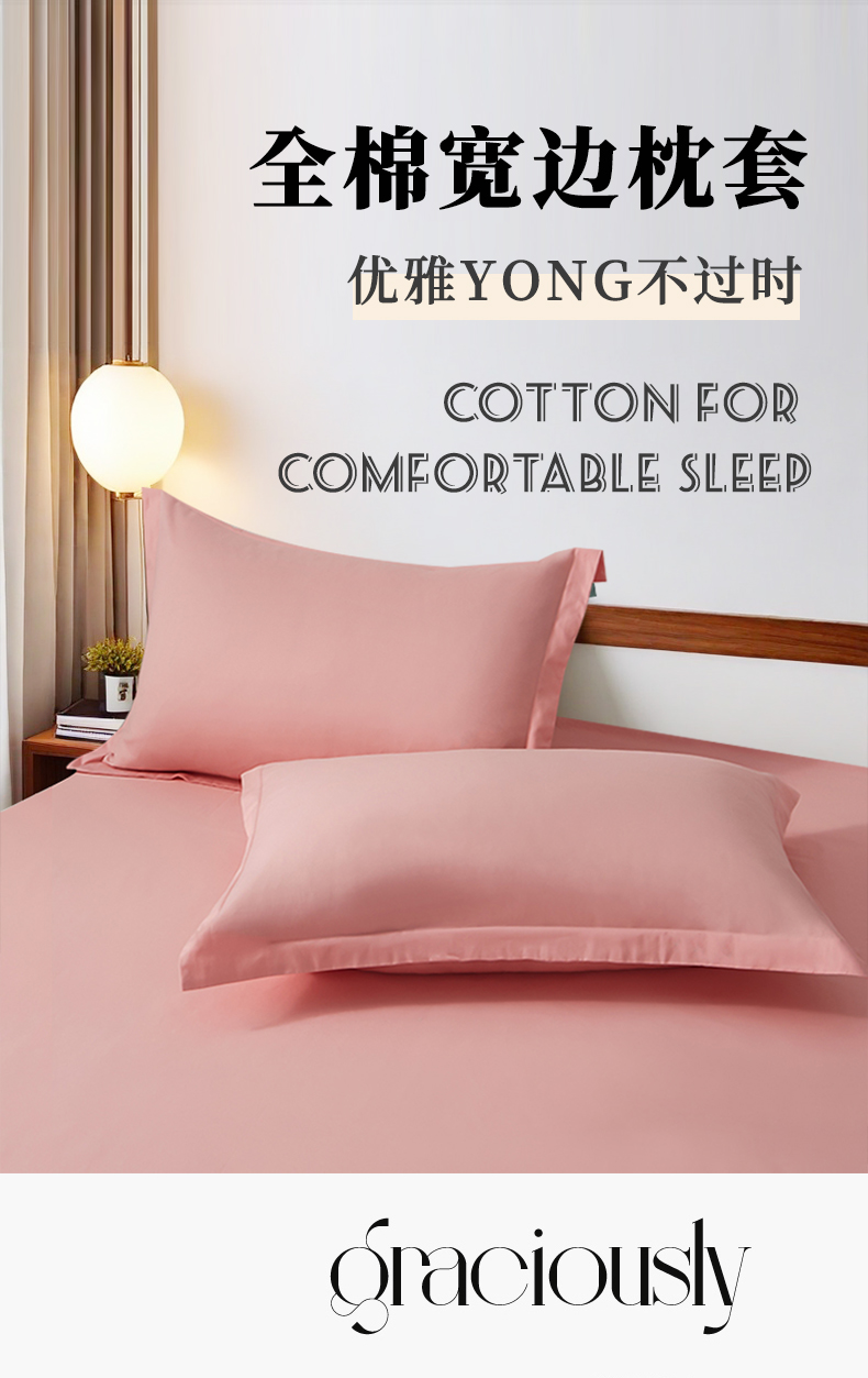商品名称:金喜 2025新款全棉枕套喷气全棉宽边枕套枕头套-优雅系列 优雅-桃花粉
