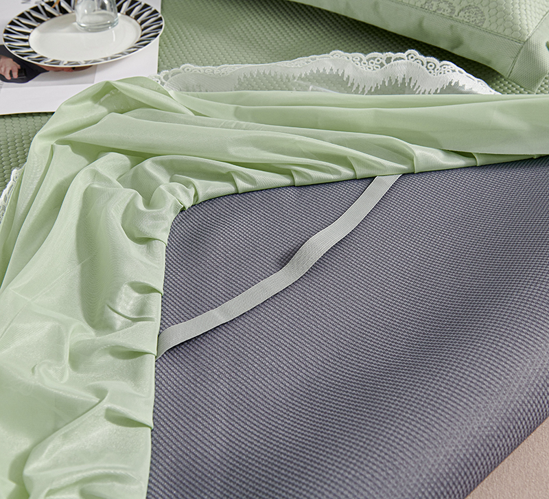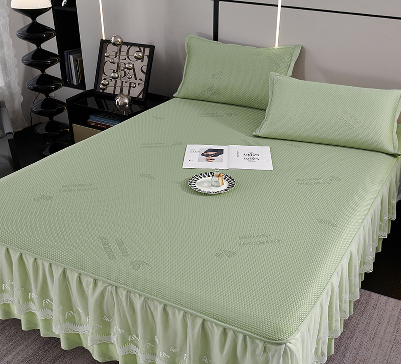 (总)青雅席业 2025新款舒适亲肤凉感冰豆豆网纱花边凉席,粉色,灰色,咖色,蓝色,绿色