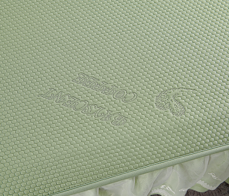 青雅席业 2025新款7A抗菌母婴级纯乙纶PE刺绣凉感丝豆豆席 床裙款 字母爱心-水绿