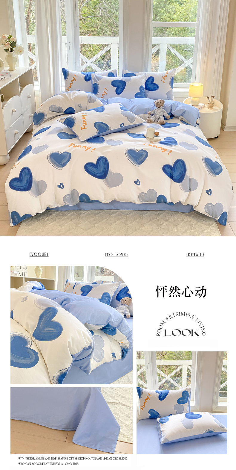 商品名称:念家居 2025新款直播爆款三件套印花小清新13070全棉四件套 怦然心动