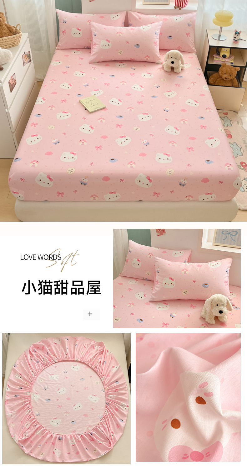 寻米 2025新款A类全棉印花床笠系列 小猫球球