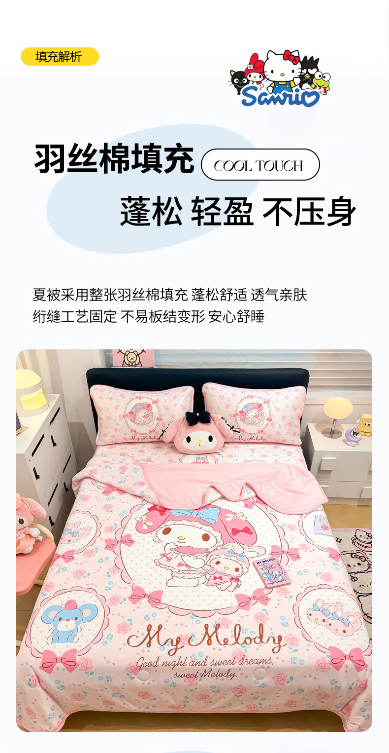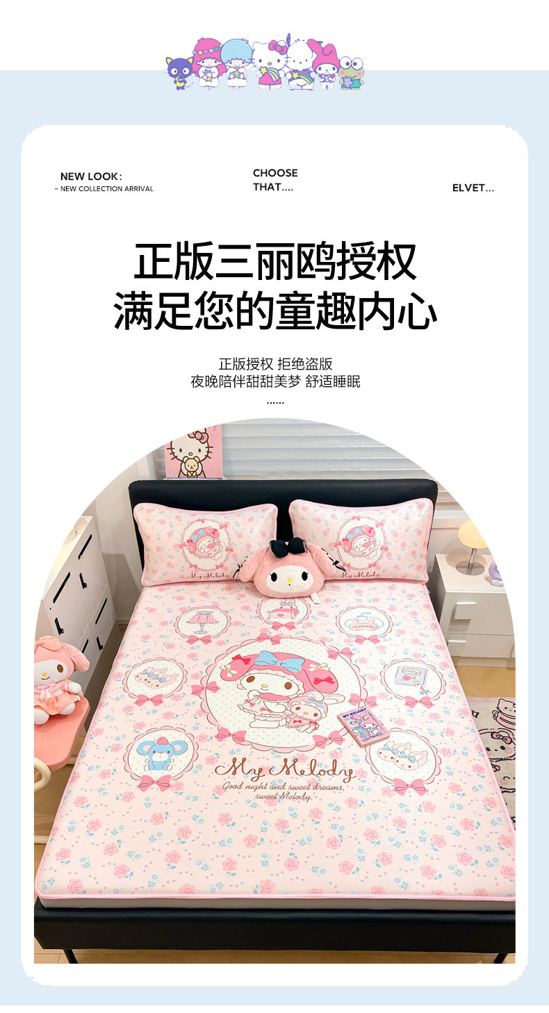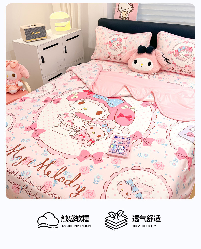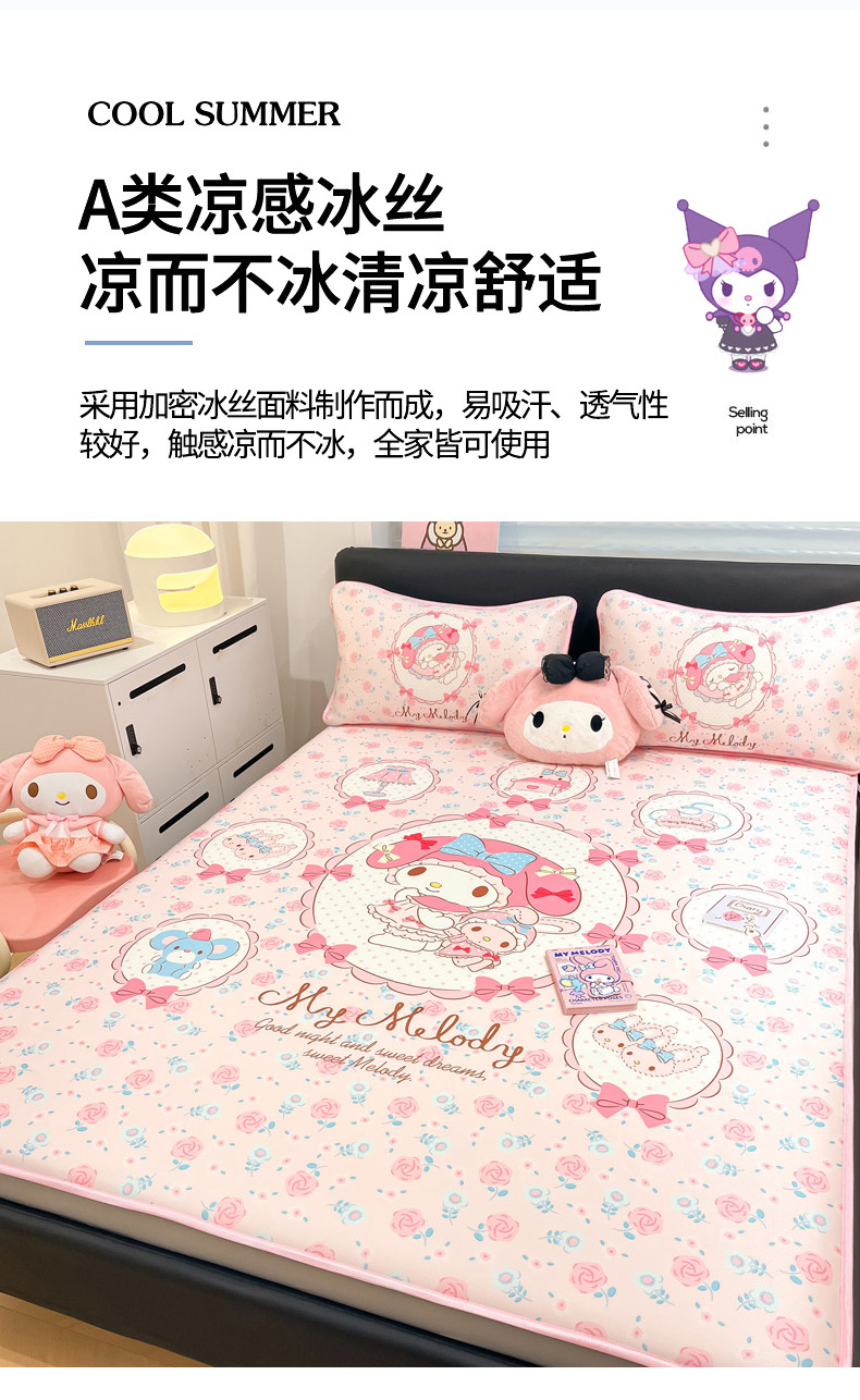 • 91家纺网 家纺一手货源 找家纺 暮思家居 2025新款正版授权A类大版数码印花三丽鸥可机洗1200D冰丝凉席可组合针织棉夏被四件套床笠款 床笠款-花园美乐蒂