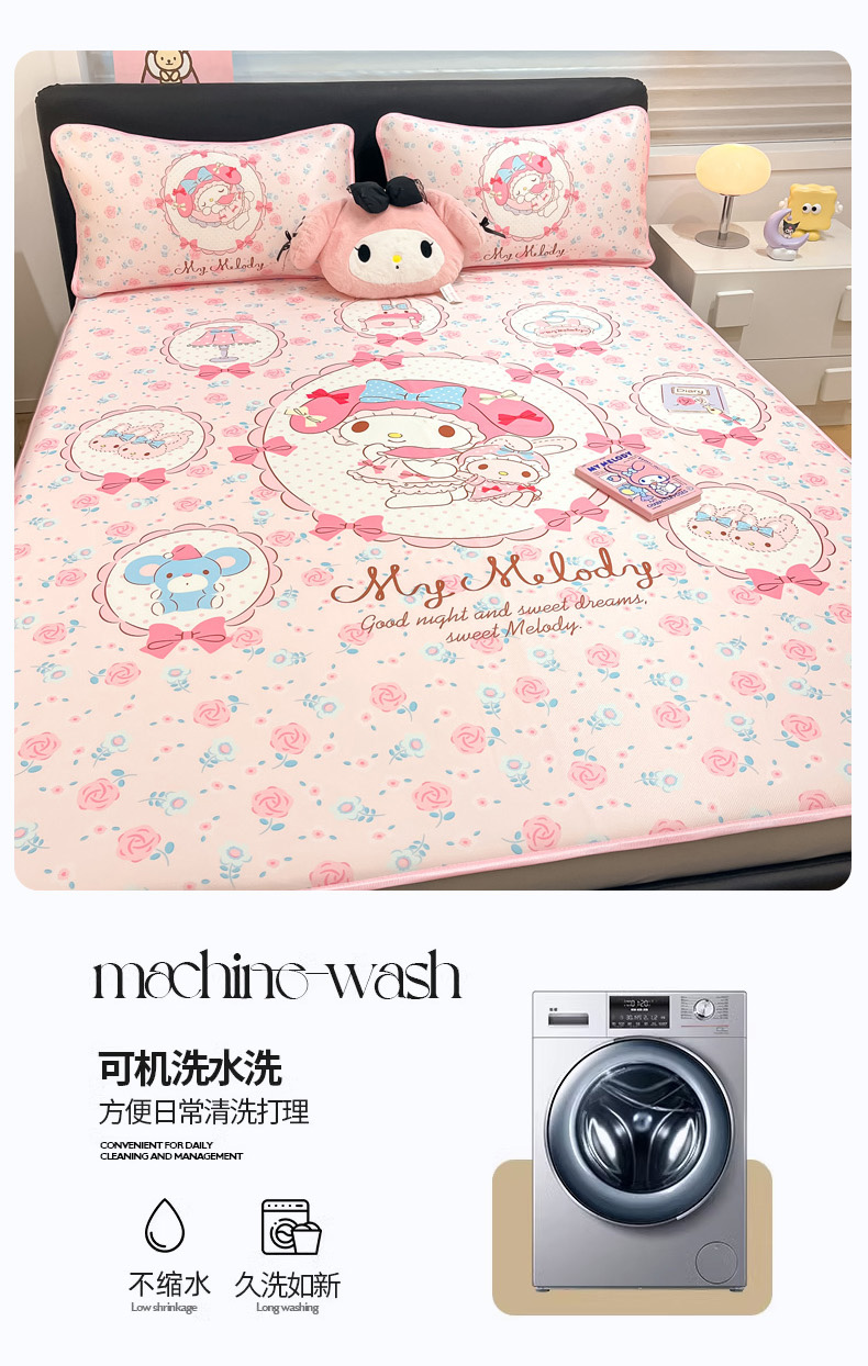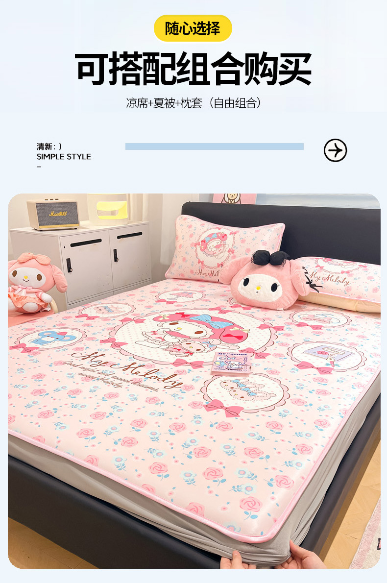 当前位置: 91家纺网 > 商品网购 > 床上用品 > 凉席 > 暮思家居 2025新款正版授权A类大版数码印花三丽鸥可机洗1200D冰丝凉席可组合针织棉夏被四件套床笠款 床笠款-花园美乐蒂