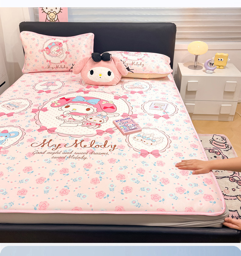 暮思家居 2025新款正版授权A类大版数码印花三丽鸥可机洗1200D冰丝凉席可组合针织棉夏被四件套床笠款 床笠款-花园美乐蒂
