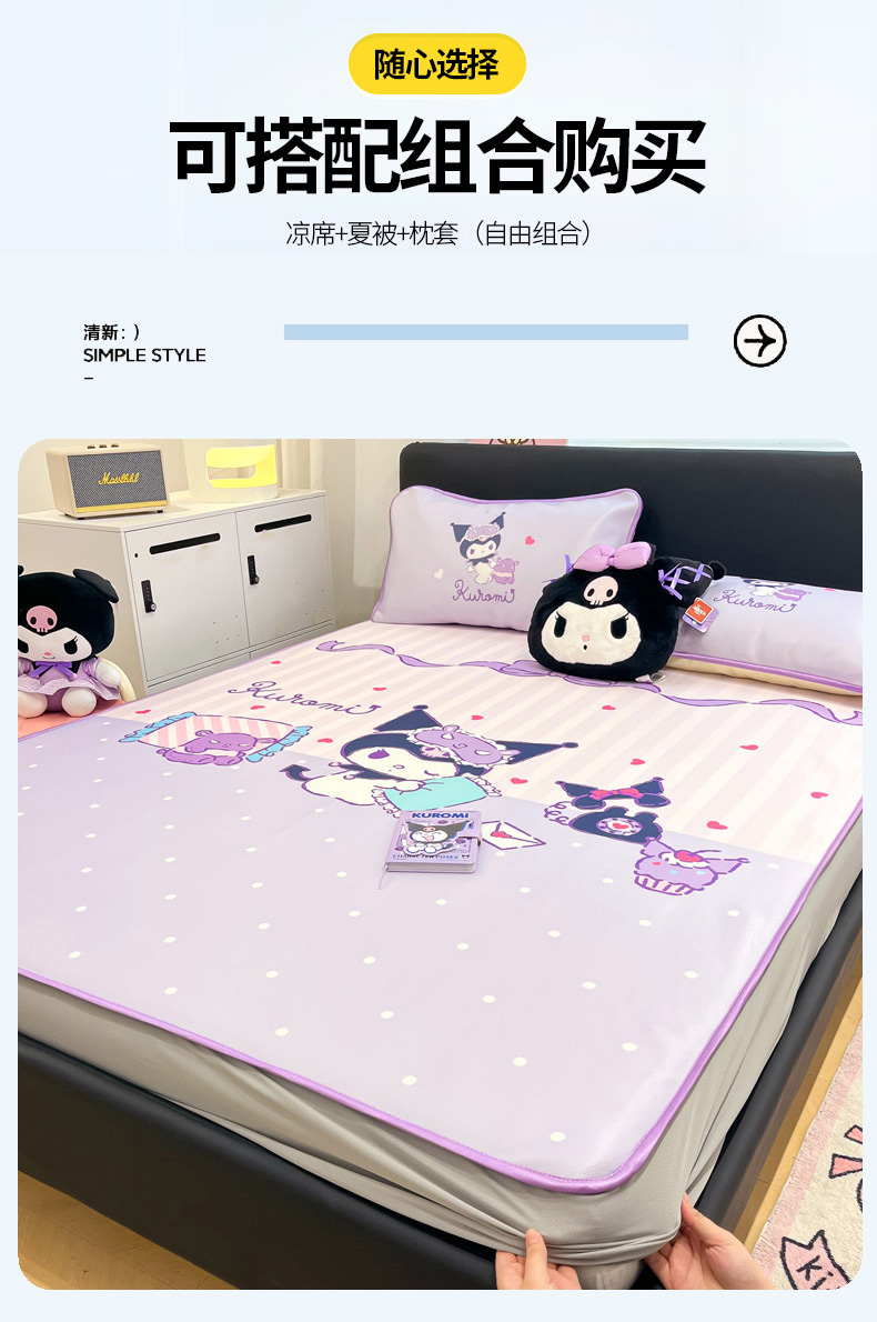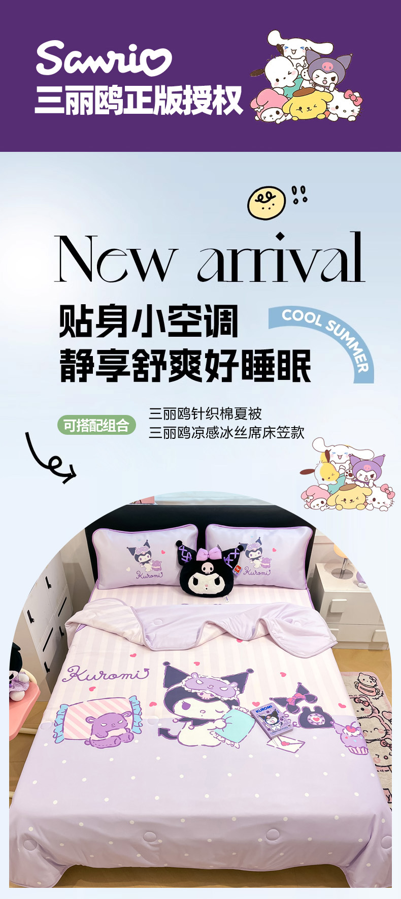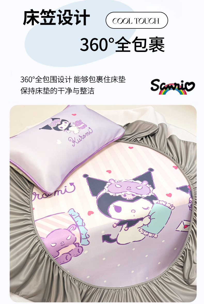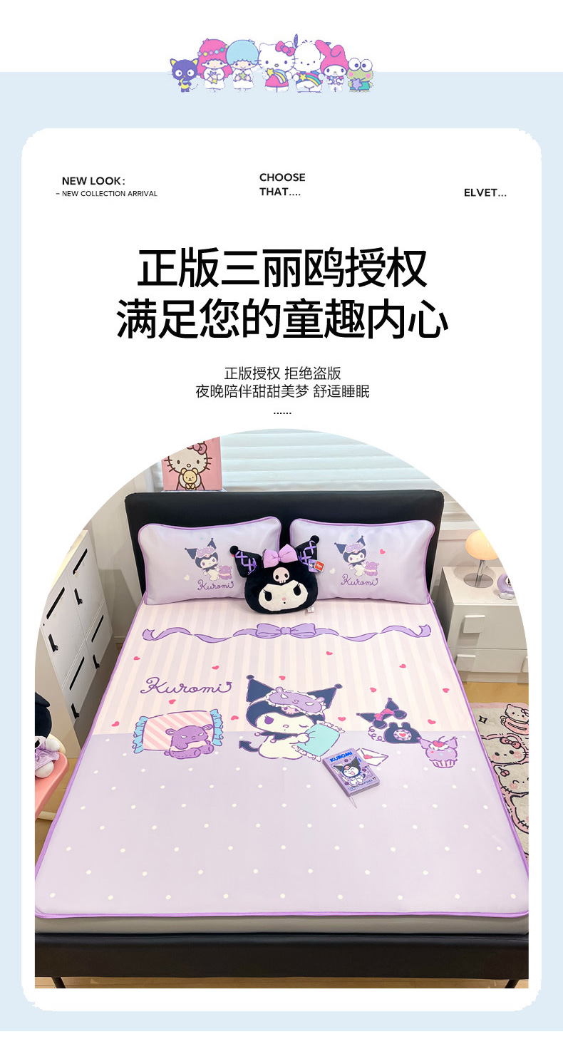 • 91家纺网 家纺一手货源 找家纺 暮思家居 2025新款正版授权A类大版数码印花三丽鸥可机洗1200D冰丝凉席可组合针织棉夏被四件套床笠款 床笠款-甜蜜库洛米