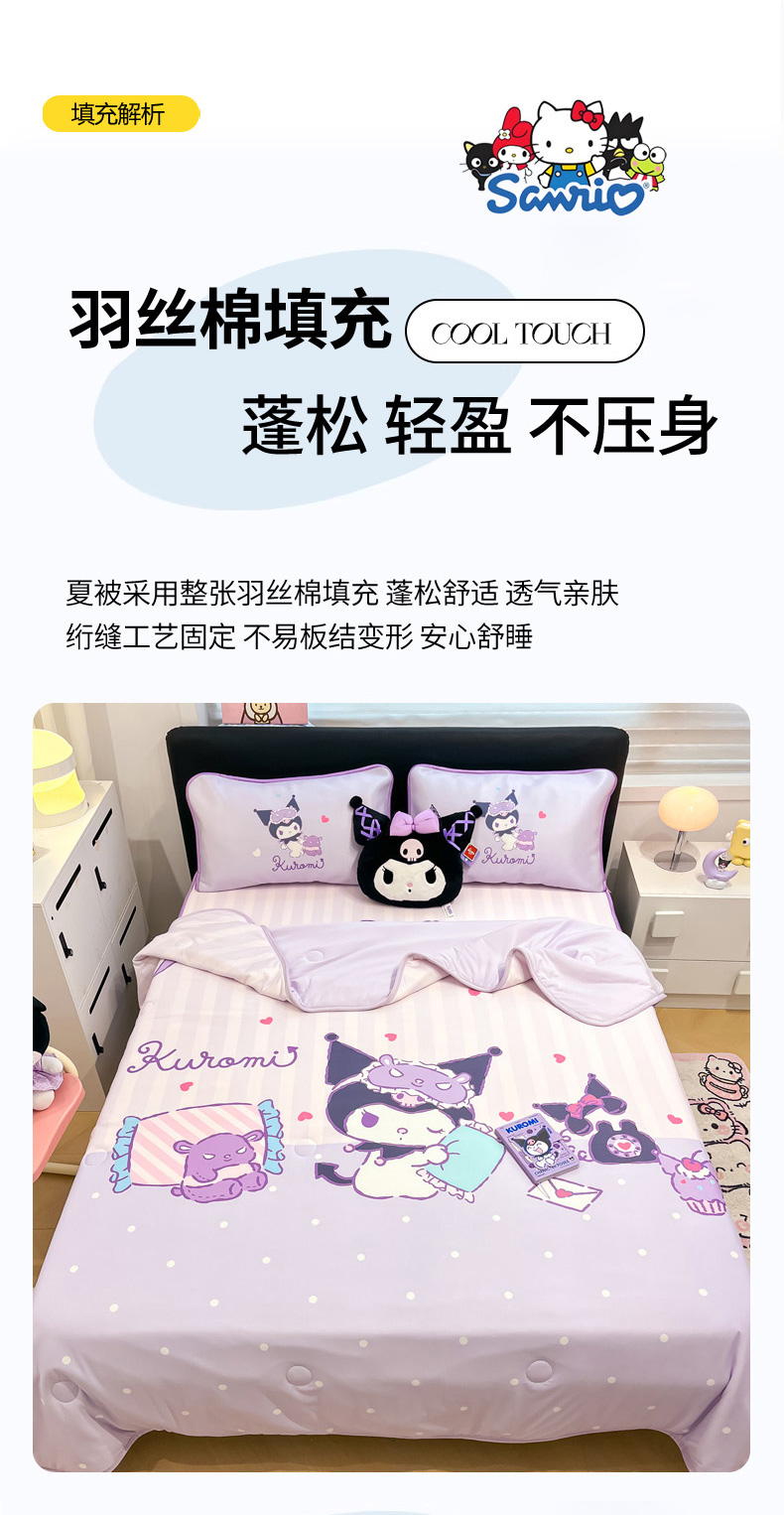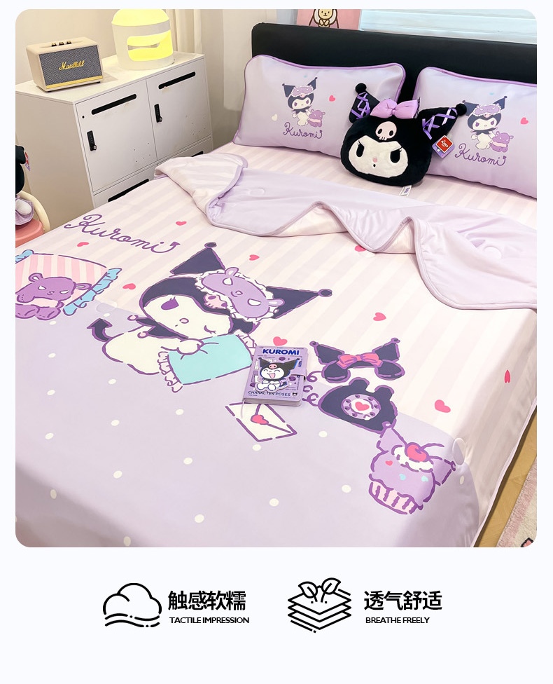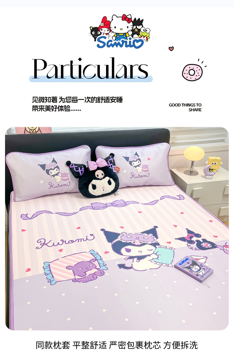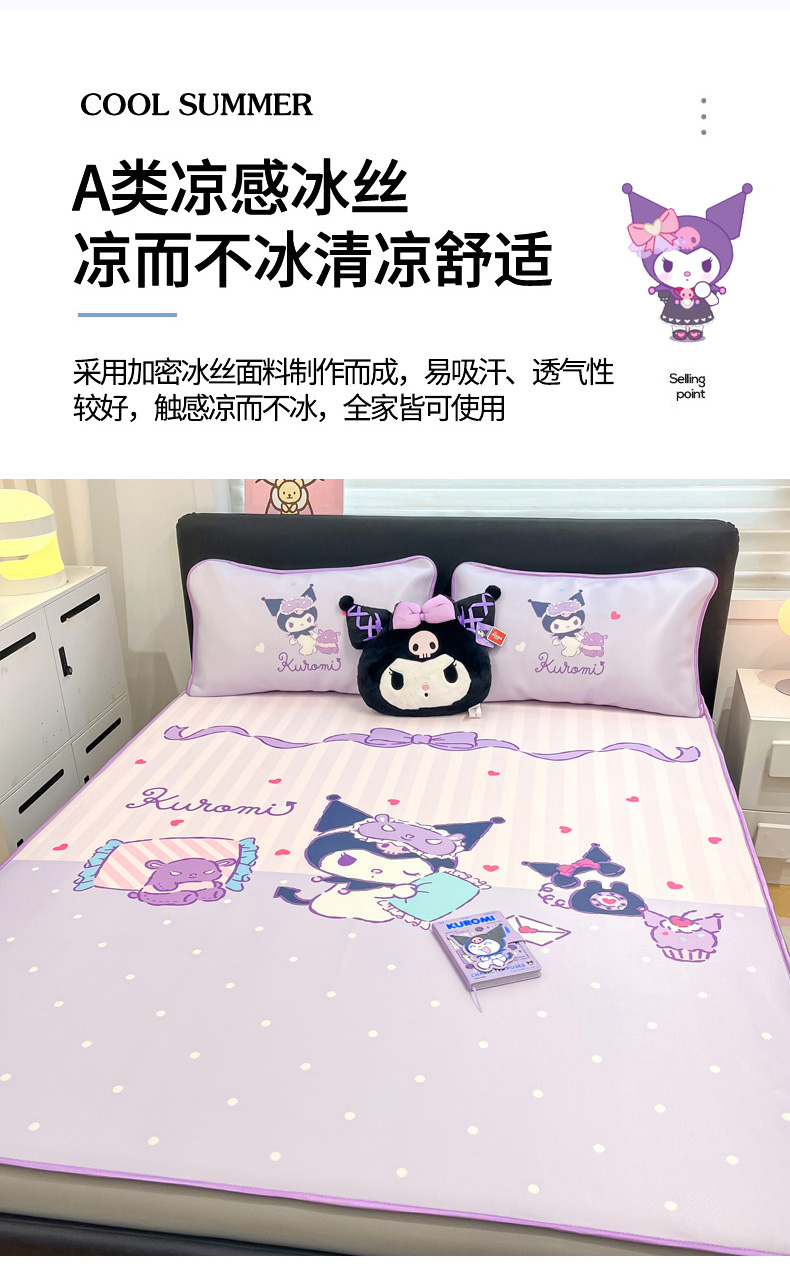 • 91家纺网 家纺一手货源 找家纺 暮思家居 2025新款正版授权A类大版数码印花三丽鸥可机洗1200D冰丝凉席可组合针织棉夏被四件套床笠款 床笠款-甜蜜库洛米