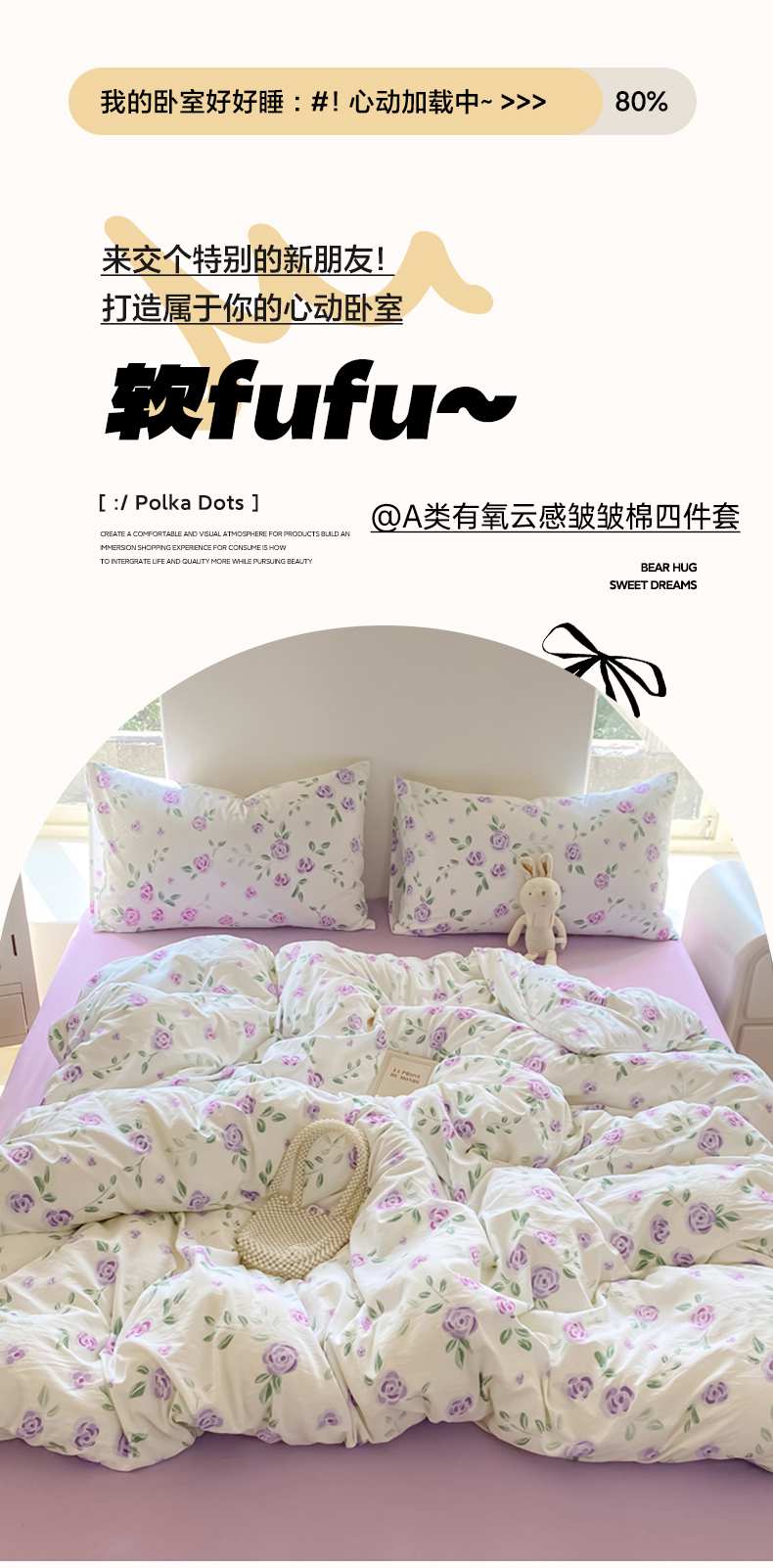当前位置: 91家纺网 > 商品网购 > 床品套件 > 四件套 > 全棉普通四件套 > 【提供买家秀】2025直播云感皱皱棉四件套水洗棉简约风小碎花被套床笠三件套-叠拍图 组合