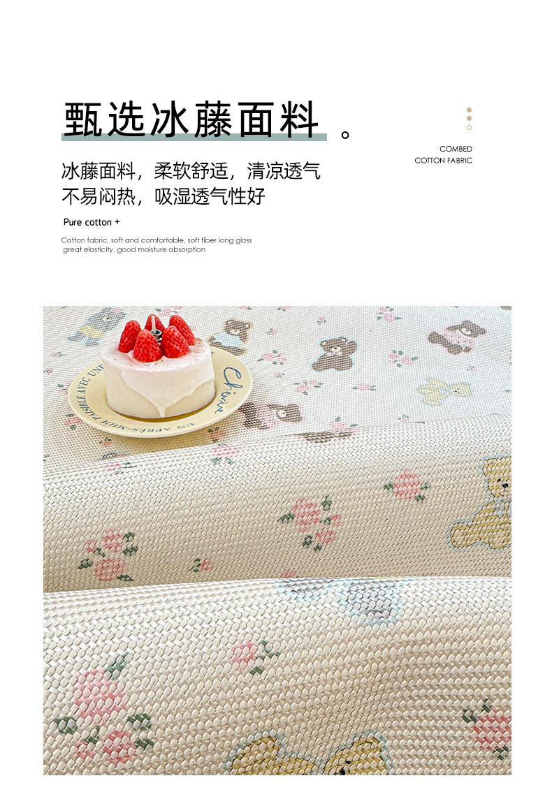 商品名称:迪乐妮 2025新款印花真冰藤冰凉席 小熊乐园
