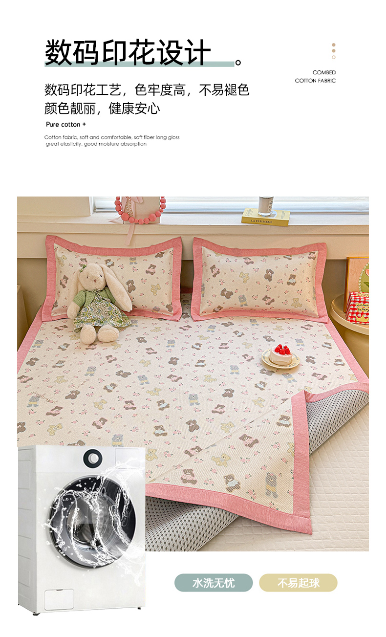 迪乐妮 2025新款印花真冰藤冰凉席 小熊乐园