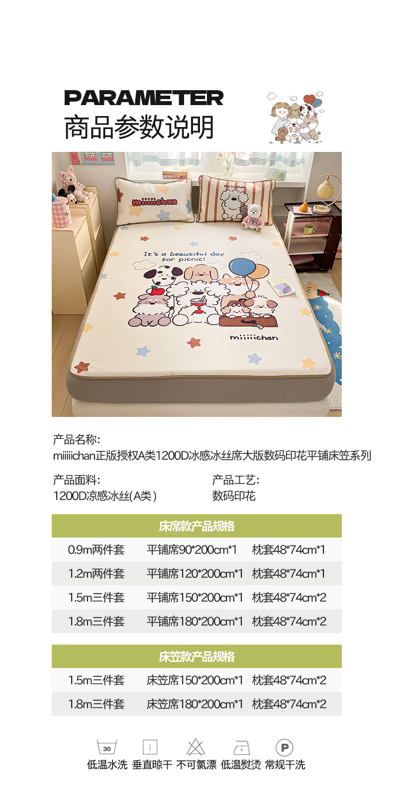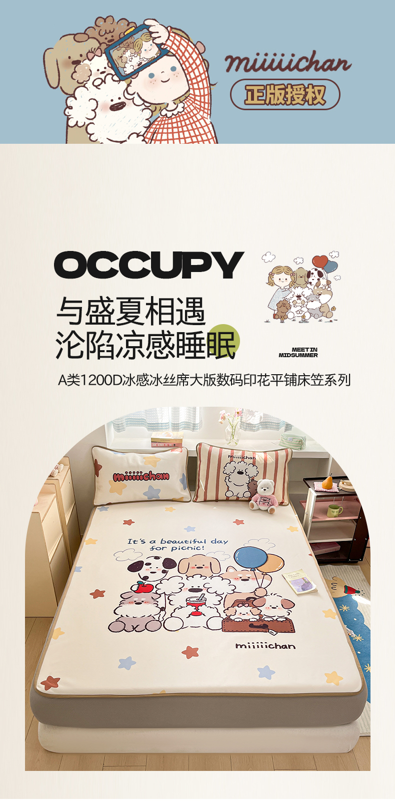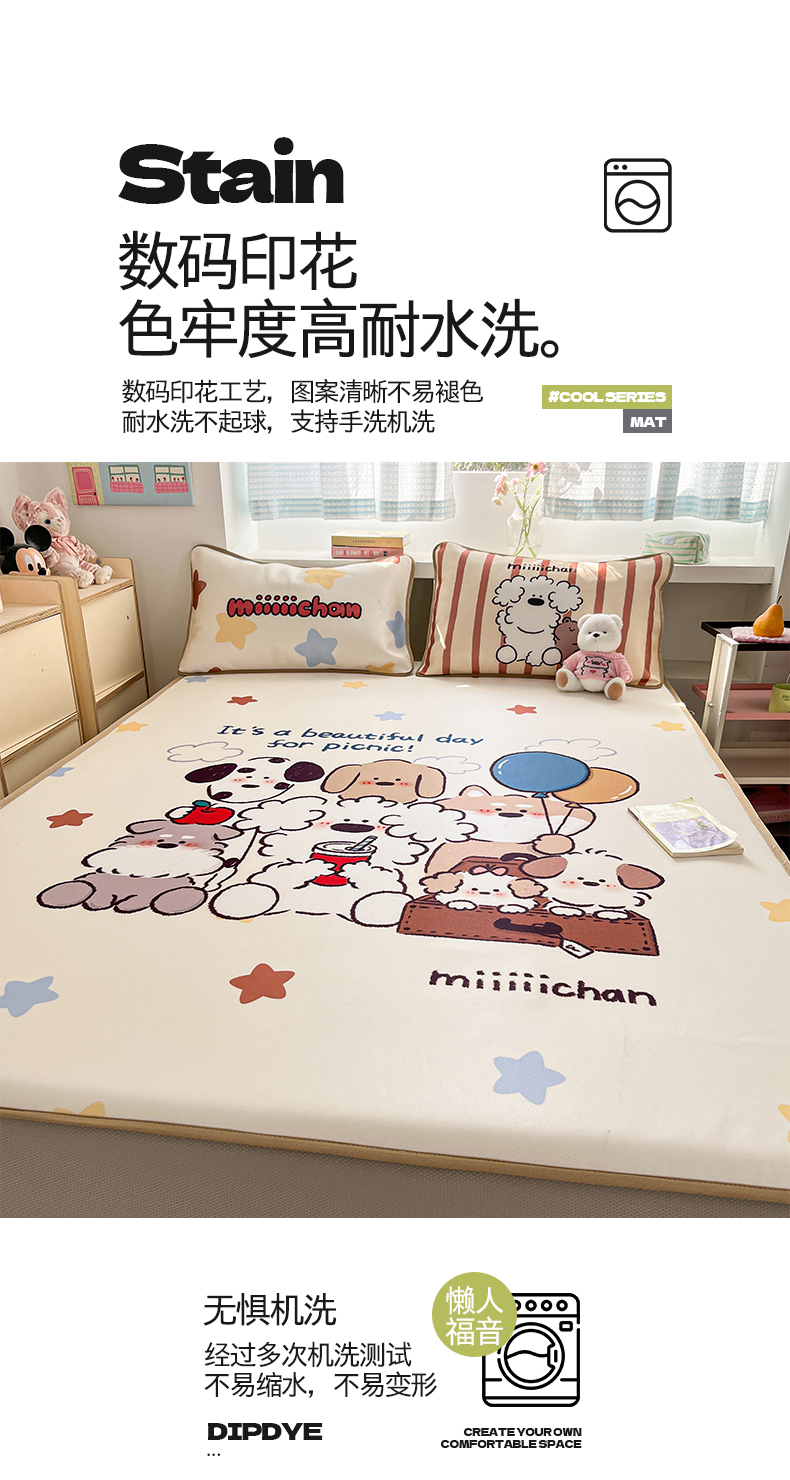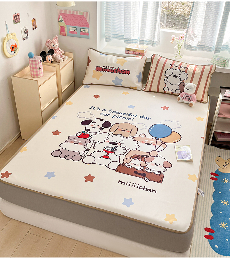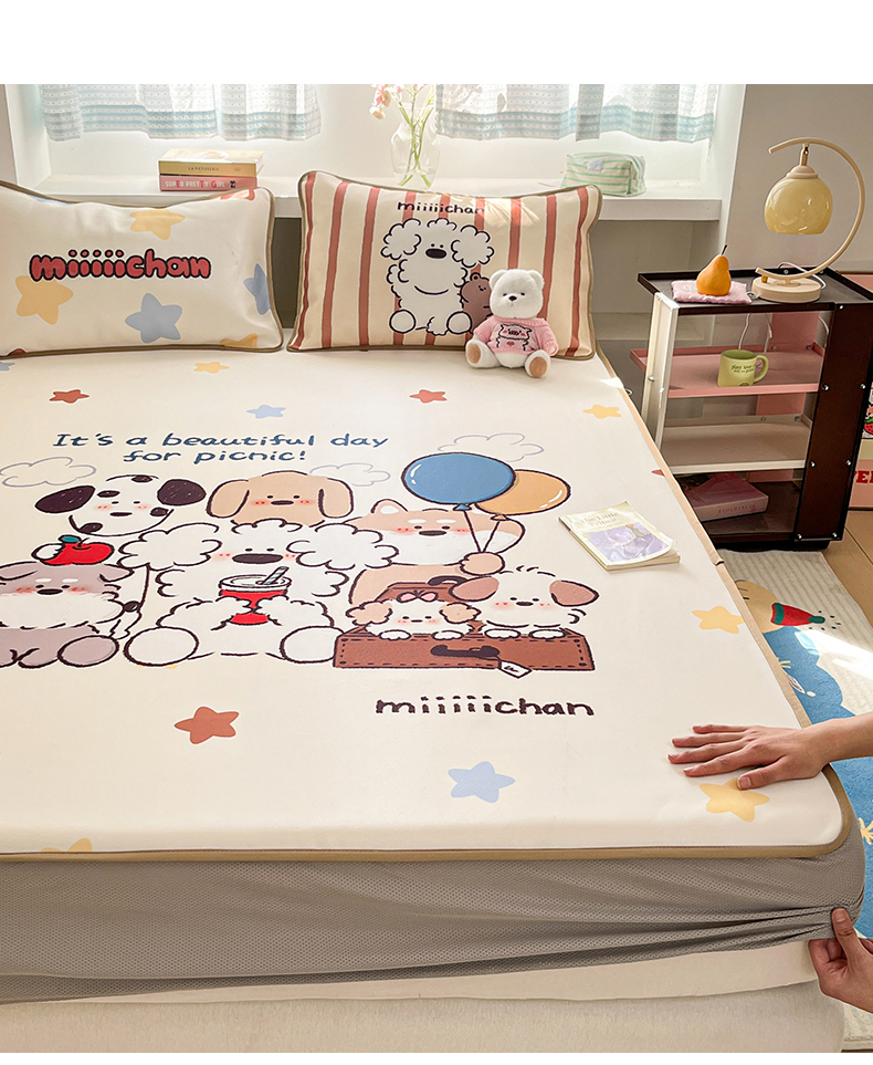 当前位置: 91家纺网 > 商品网购 > 床品套件 > 三件套 > 金爱家 2025新款正版授权miiiiichan可爱卡通大版数码印花A类1200D冰感丝凉感席冰丝三件套平铺床笠系列 星愿小狗