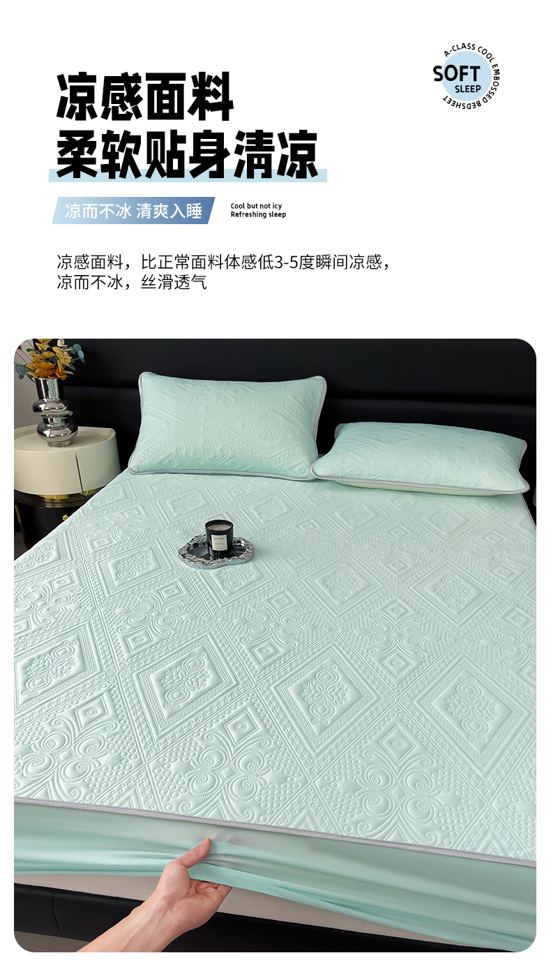 世纪绒品 2025新款A类凉感压花单床笠单夏被 薄荷浅绿-单夏被