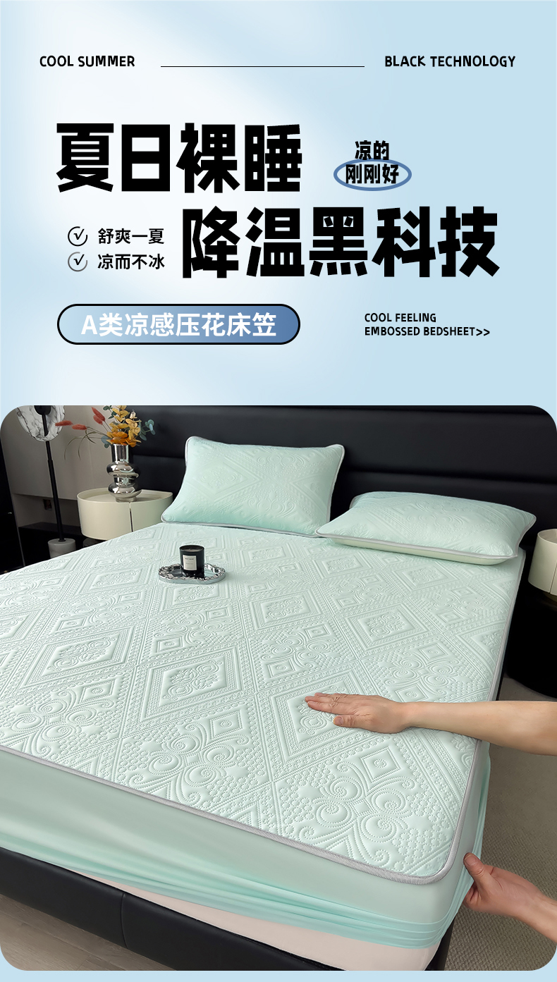 • 91家纺网 家纺一手货源 找家纺 世纪绒品 2025新款A类凉感压花单床笠单夏被 薄荷浅绿-单夏被
