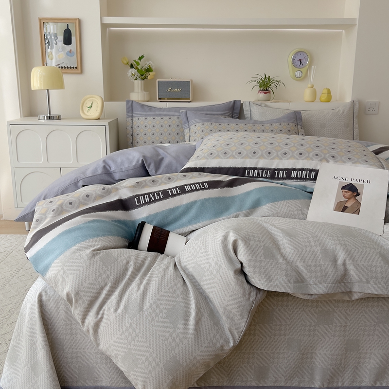 当前位置: 91家纺网 > 商品网购 > 床品套件 > 四件套 > 普通磨毛四件套 > 优品阁 2024新款全棉磨毛四件套 摩登气息-灰