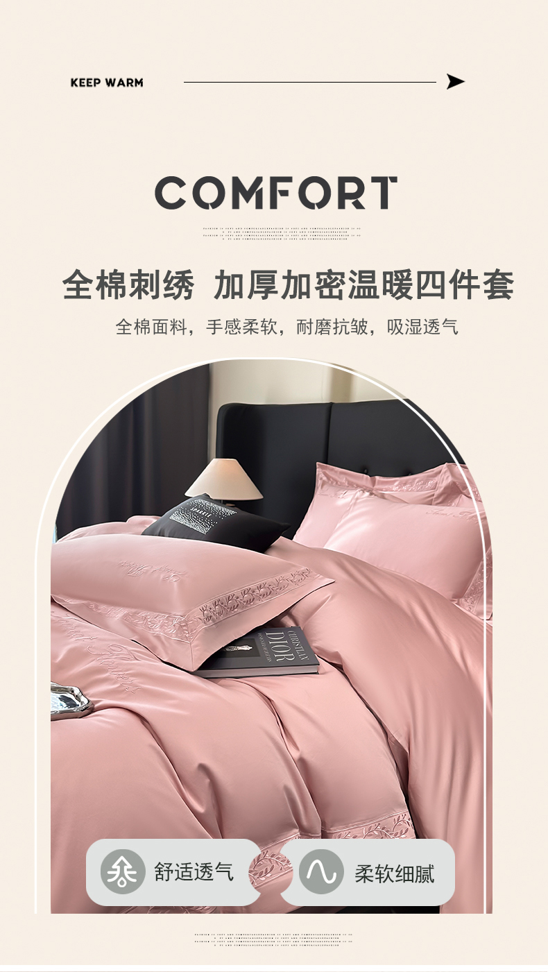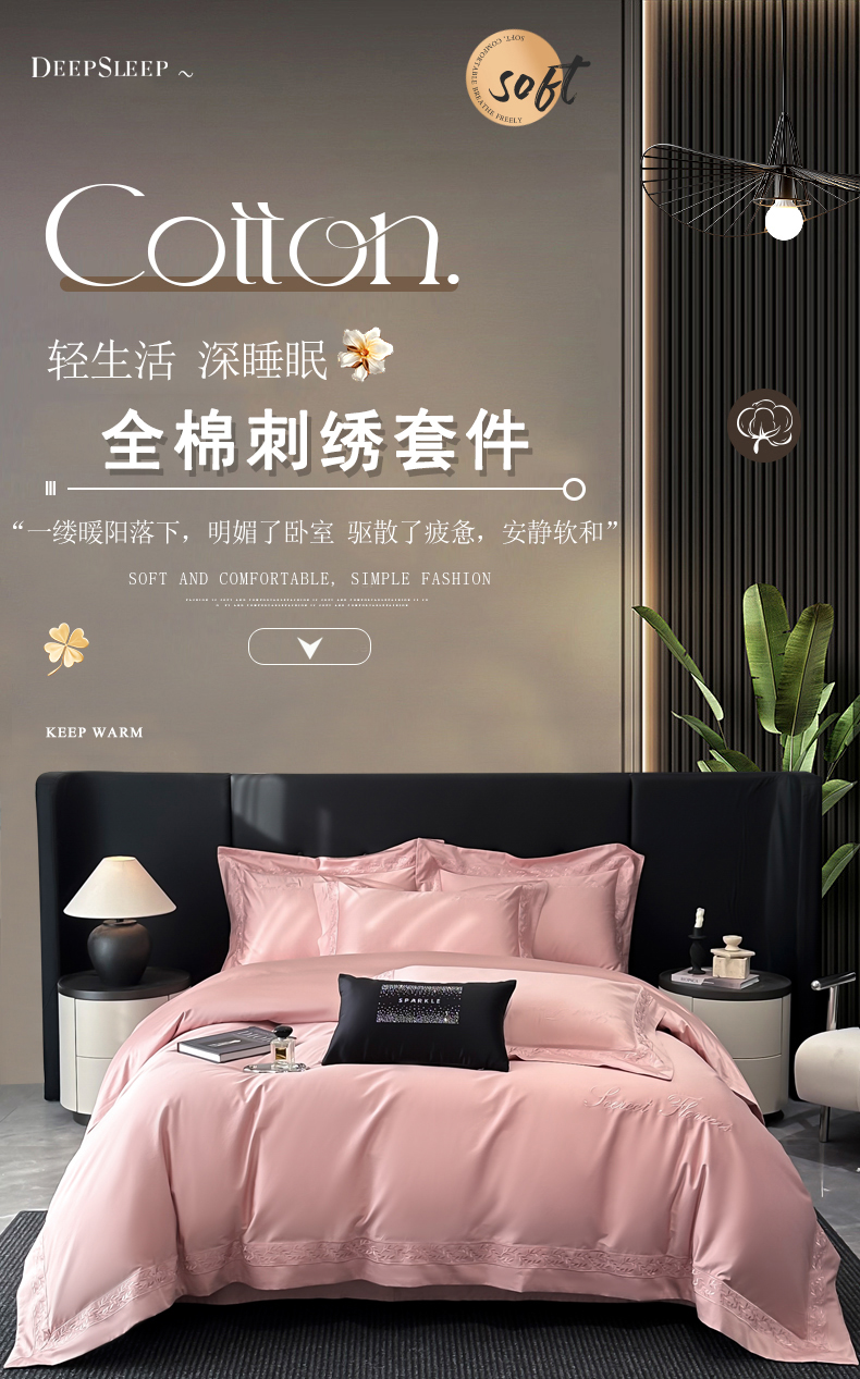 (总)2023新款全棉四件套-富贵花,奶昔白,温柔粉,星辰蓝