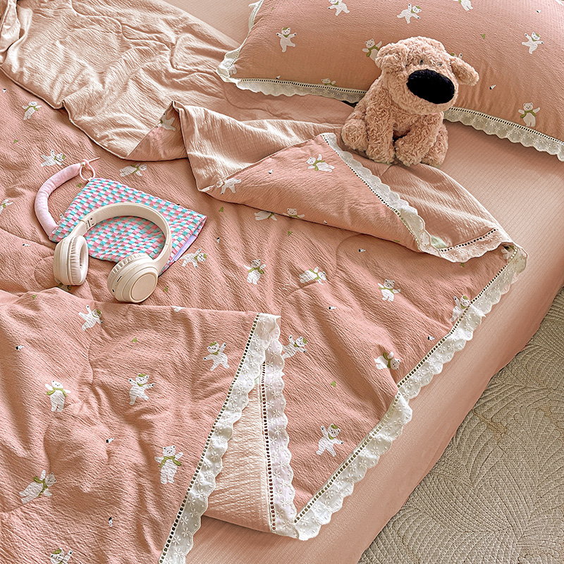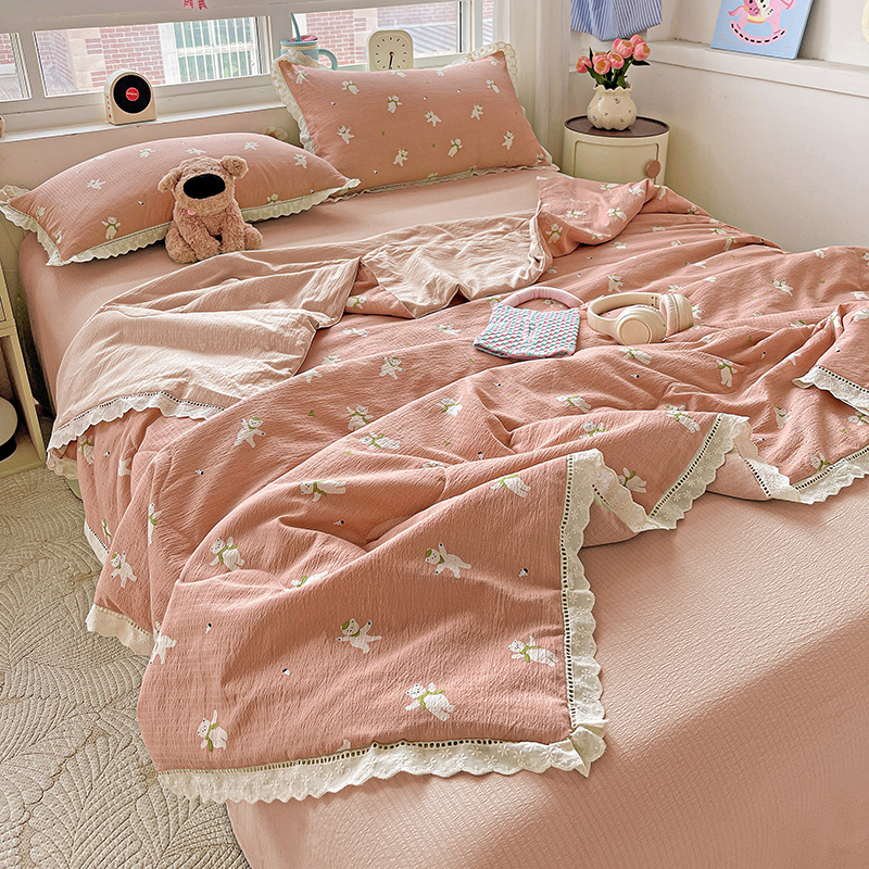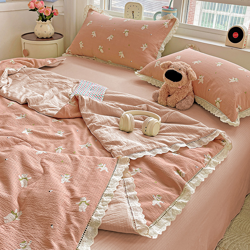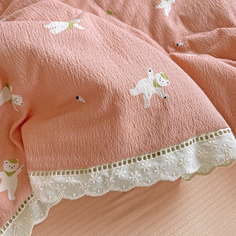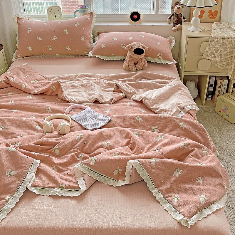 2025新款云感皱皱纱全棉花边款夏被四件套