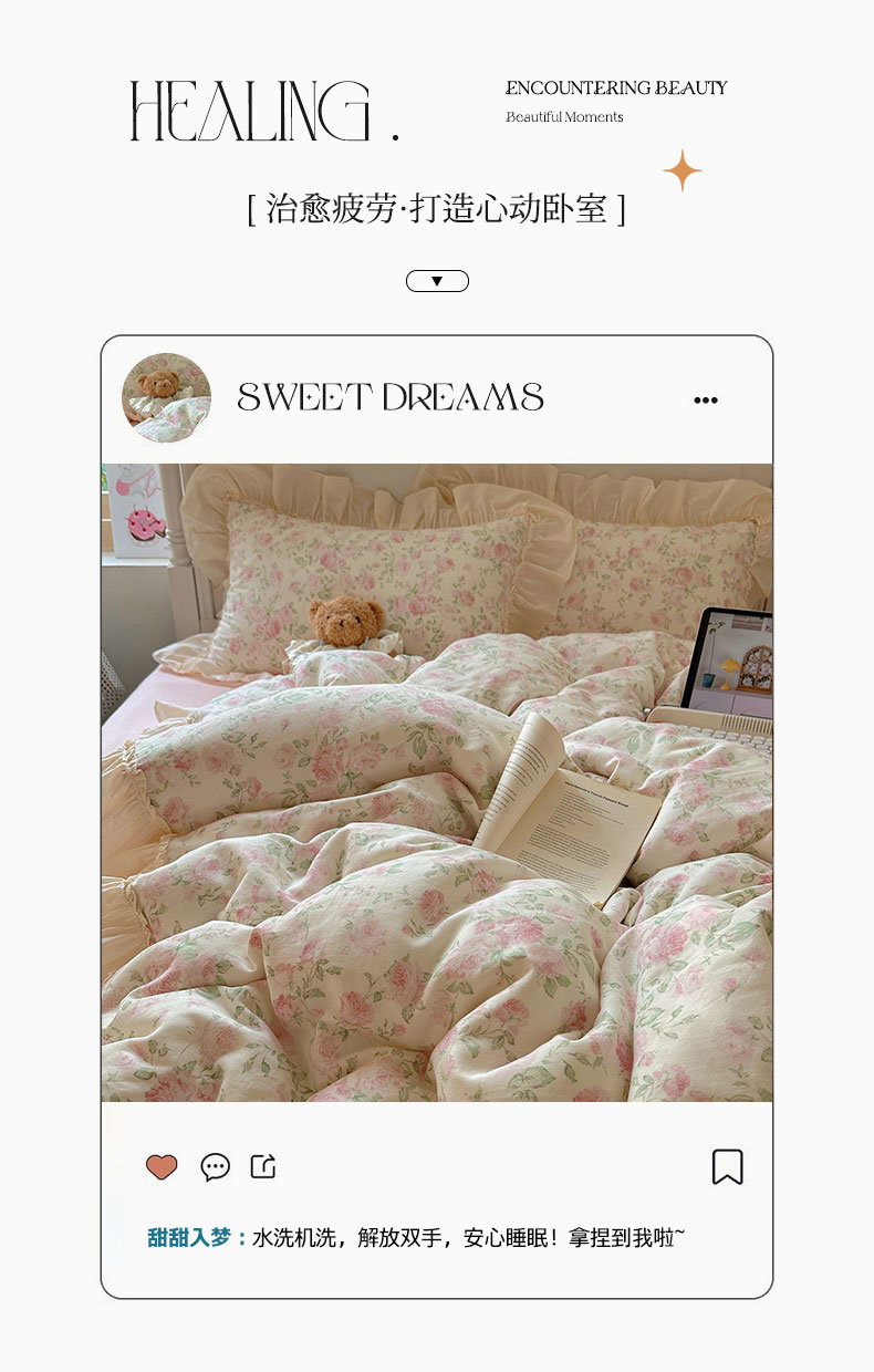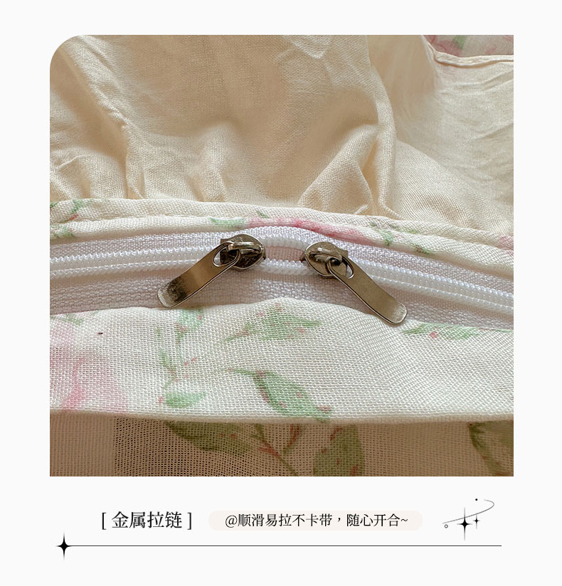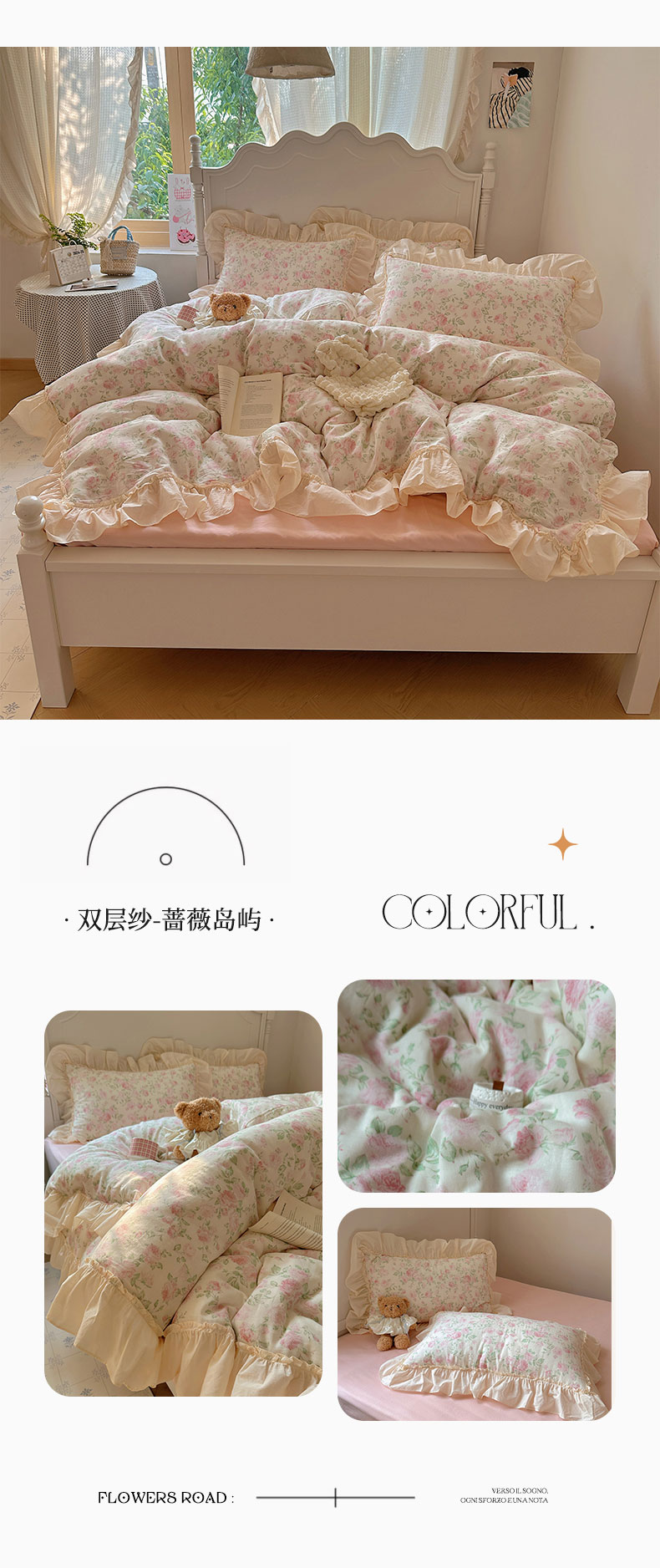 当前位置: 91家纺网 > 商品网购 > 床品套件 > 四件套 > 双层纱四件套 > 六巷胡同2025新款法式小碎花a类全棉双层纱花边款四件套 双层纱-蔷薇岛屿