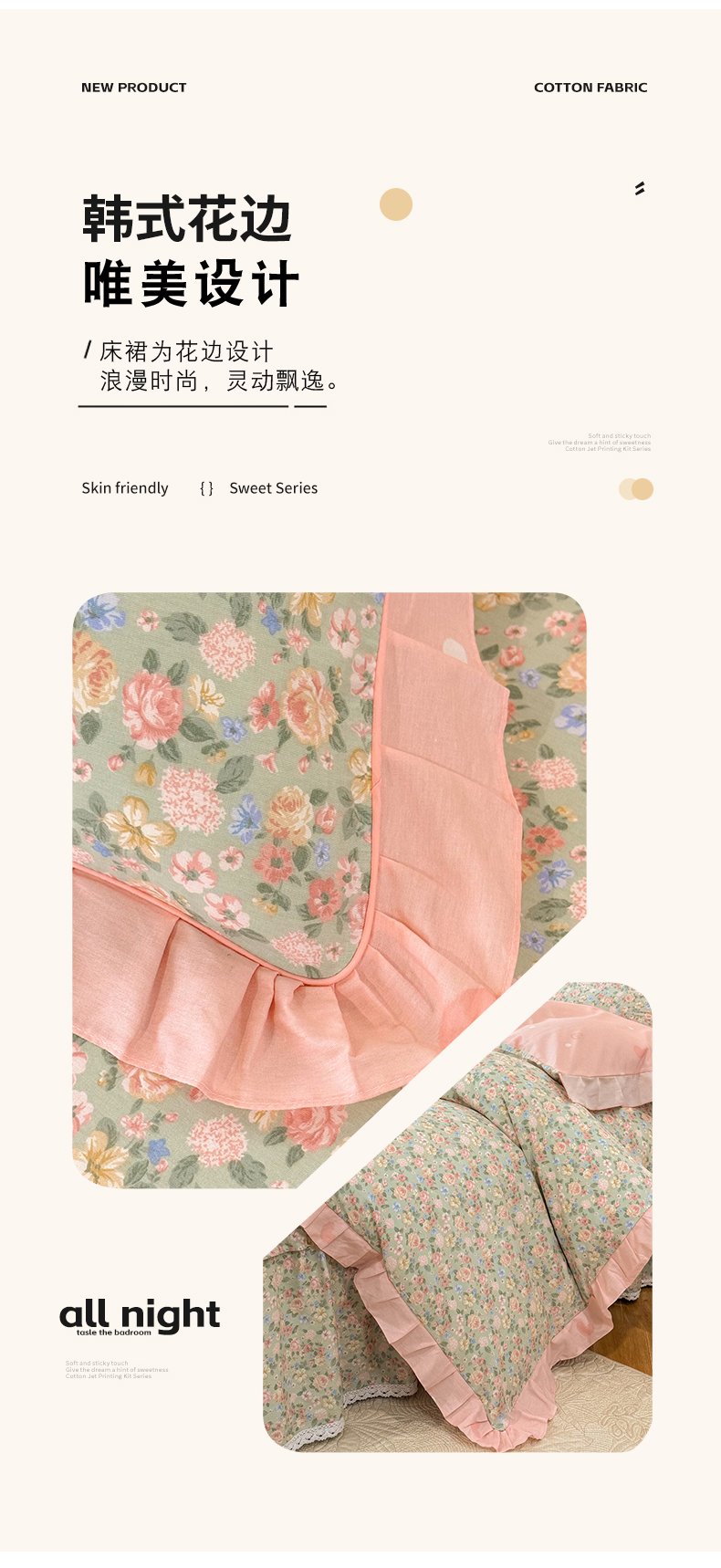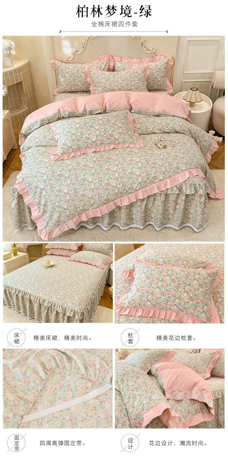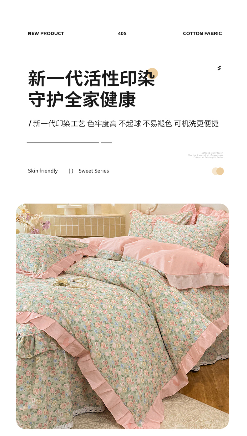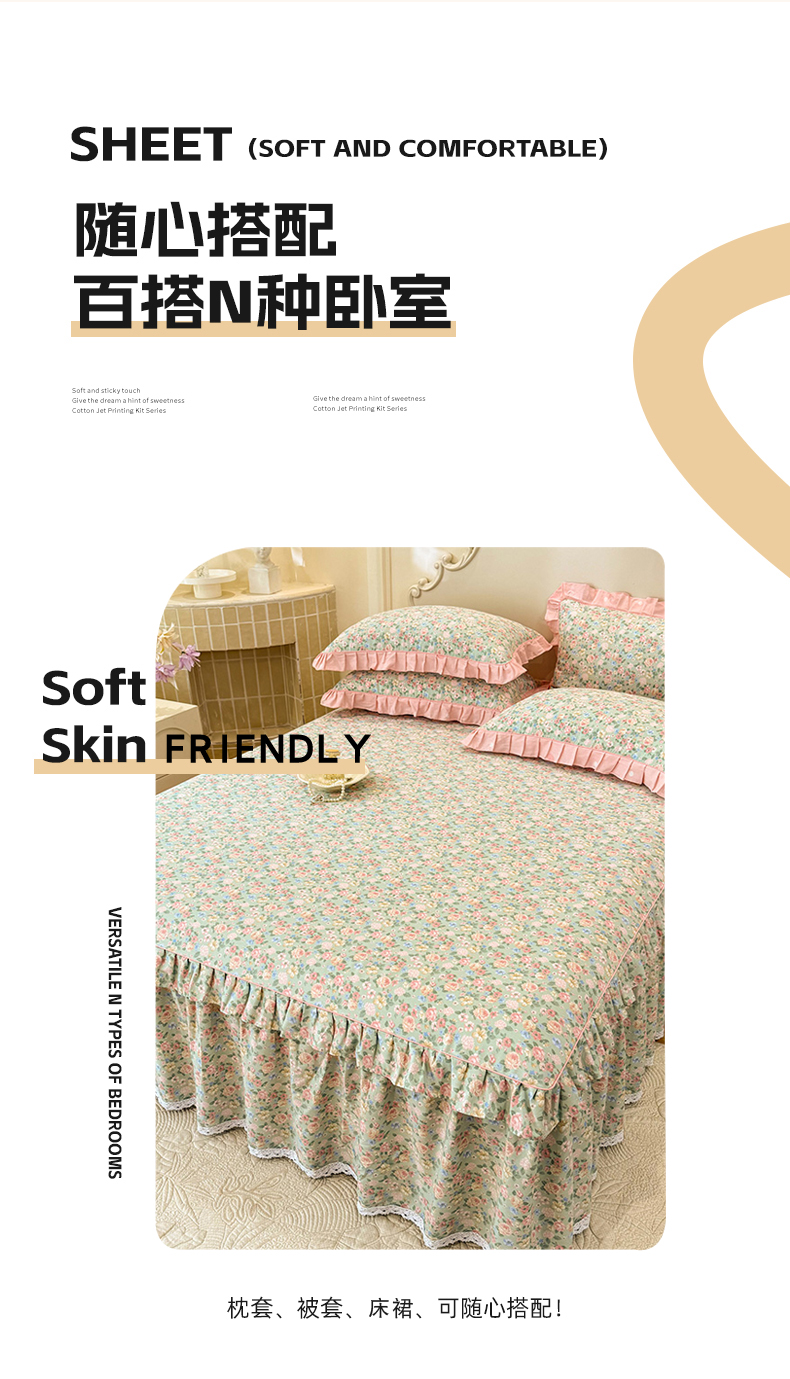 (总)美达家纺 2025新款全棉纯棉AB版蕾丝小花边单层床裙四件套,解语花,南湘,沁雨花叶,悦棠,花香梦境,夏沫浅语-蓝,恋爱小兔,氧气格调,婉宁-粉,镜花水月