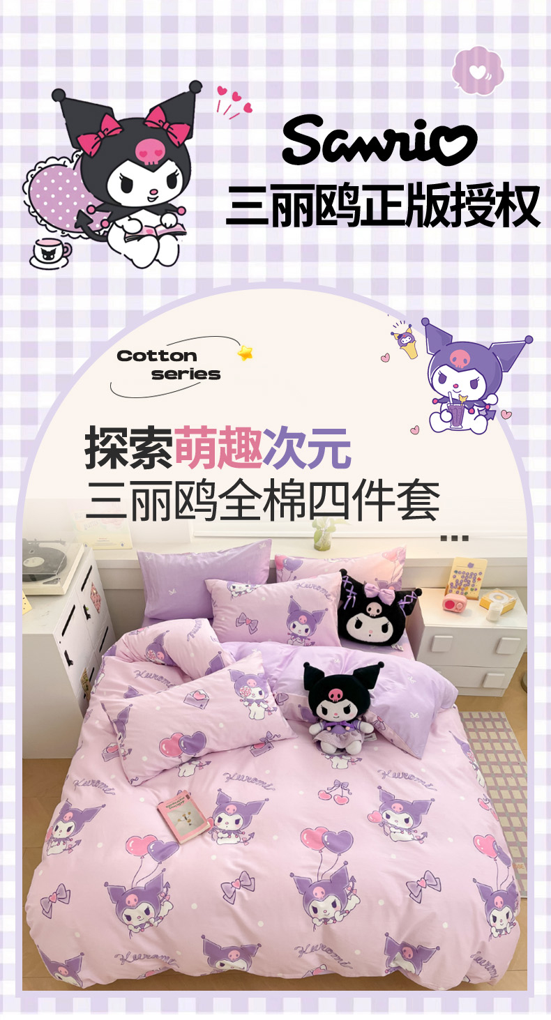 当前位置: 91家纺网 > 商品网购 > 床品套件 > 四件套 > 全棉普通四件套 > 暮思家居 2025新款正版授权三丽鸥全棉纯棉四件套系列-第三批 气球库洛米
