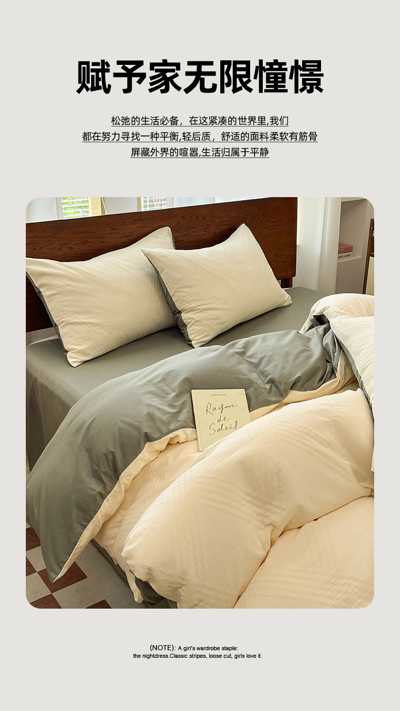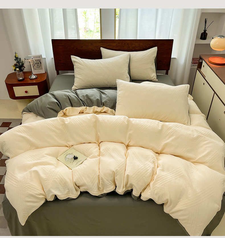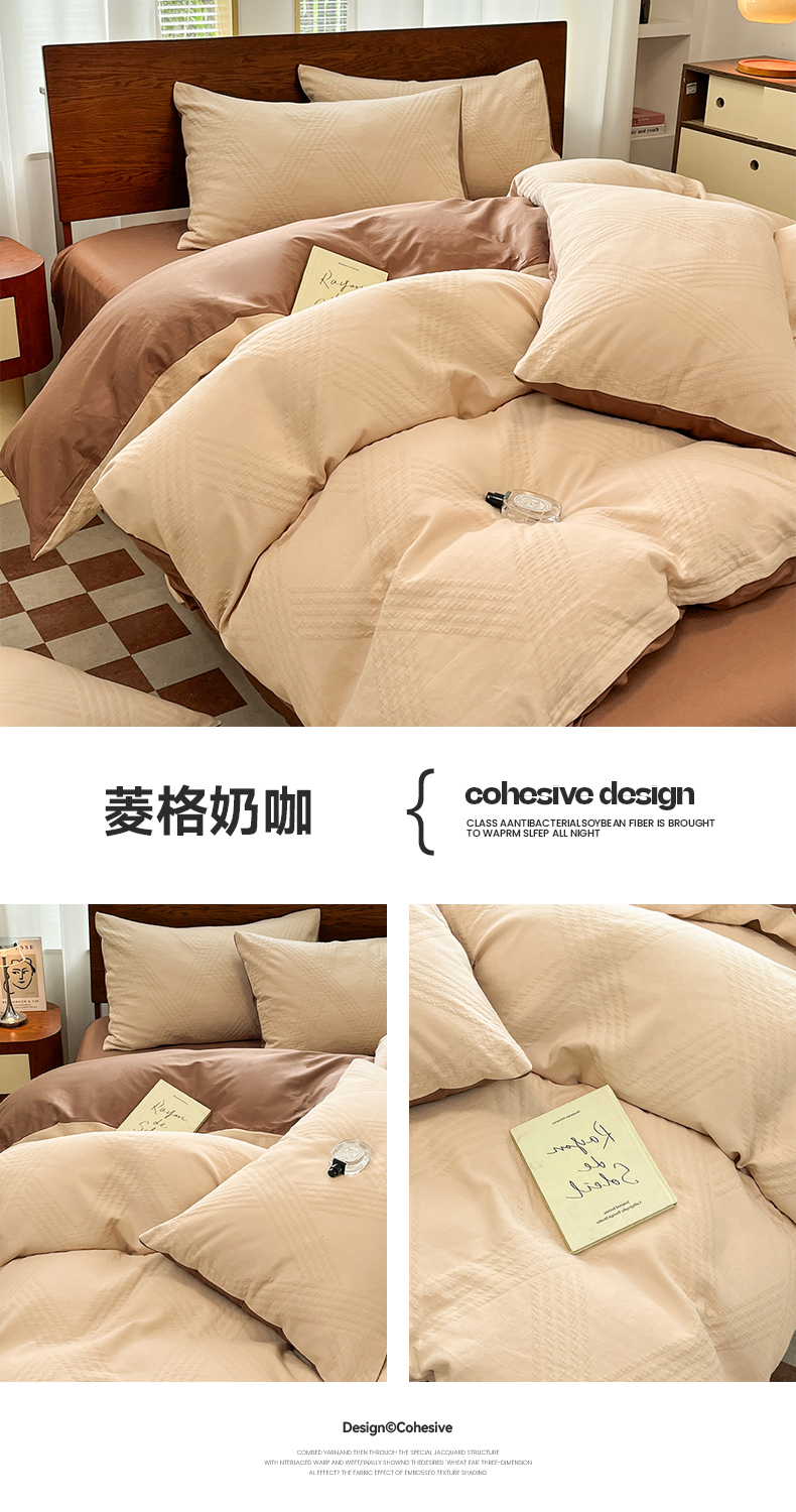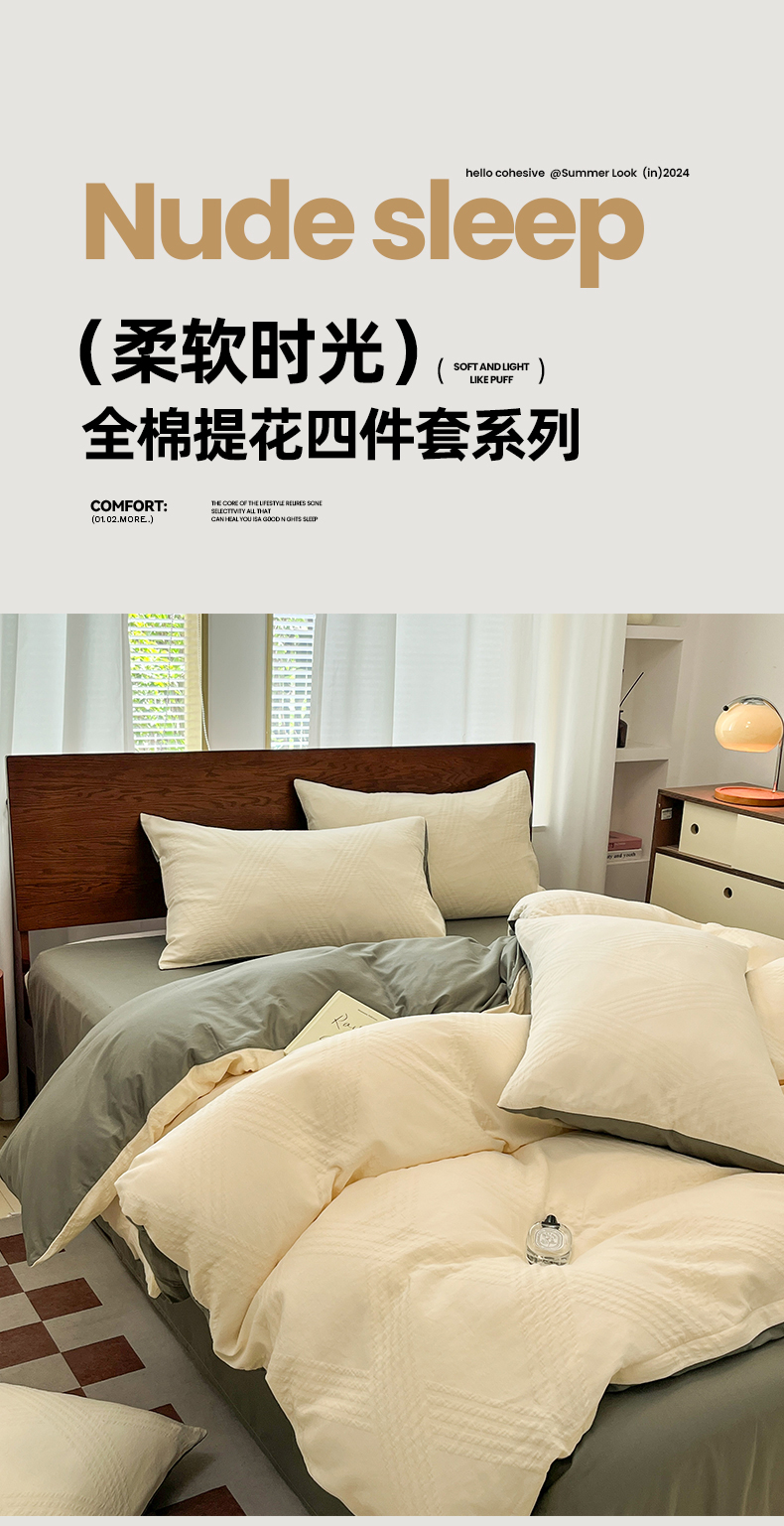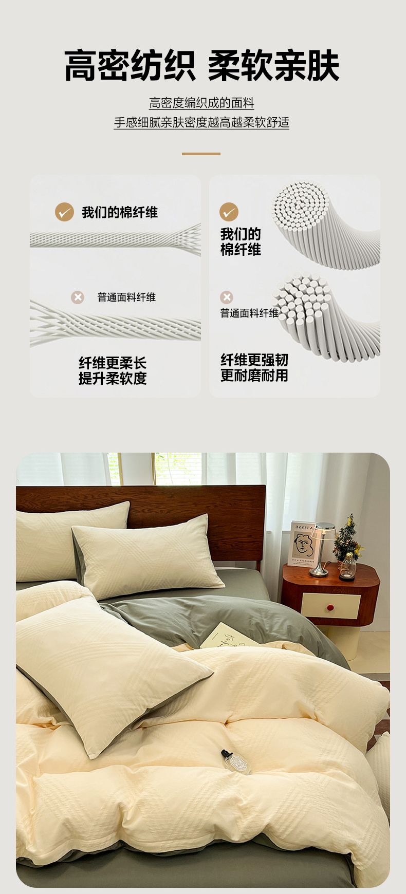 当前位置: 91家纺网 > 商品网购 > 床品套件 > 四件套 > 全棉普通四件套 > 沐棉家居 2025新款亲肤舒适全棉纯棉提花四件套 菱格米-灰