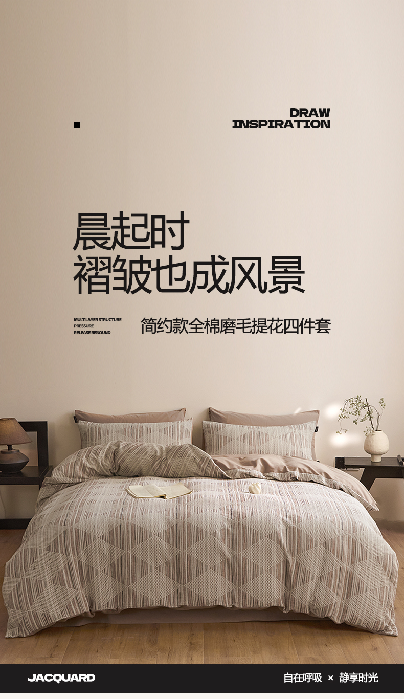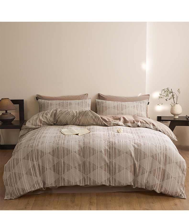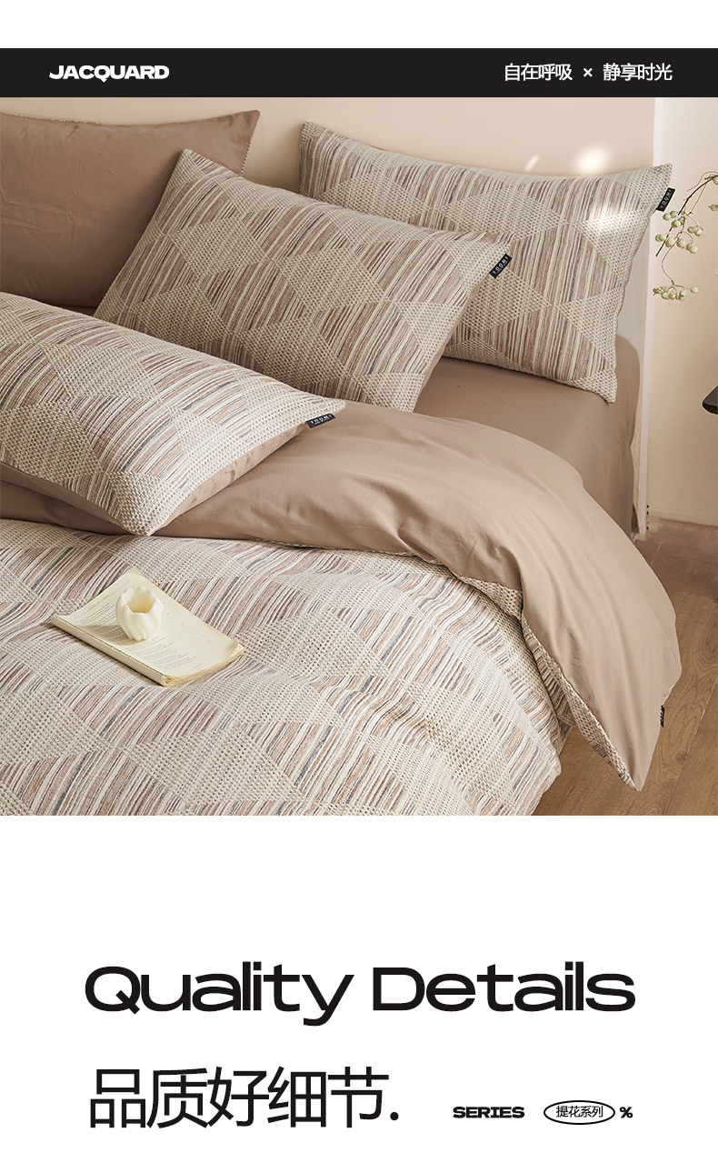 商品名称:涵宸家纺 2025新款简约款全棉磨毛提花四件套-未眠 兰卡威-咖