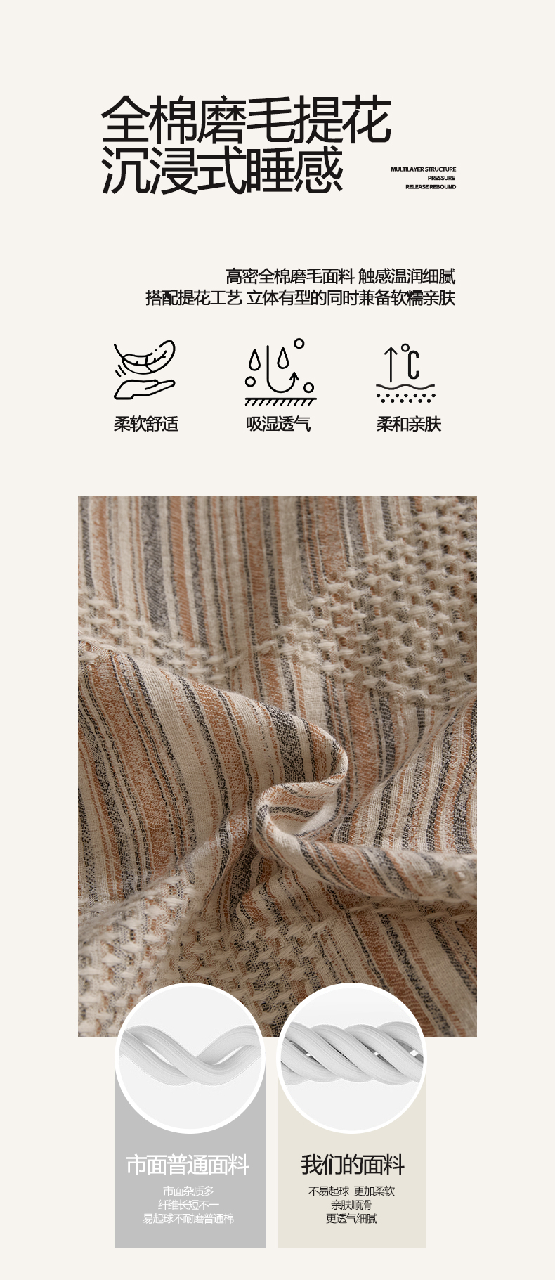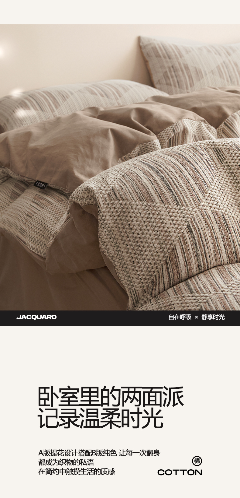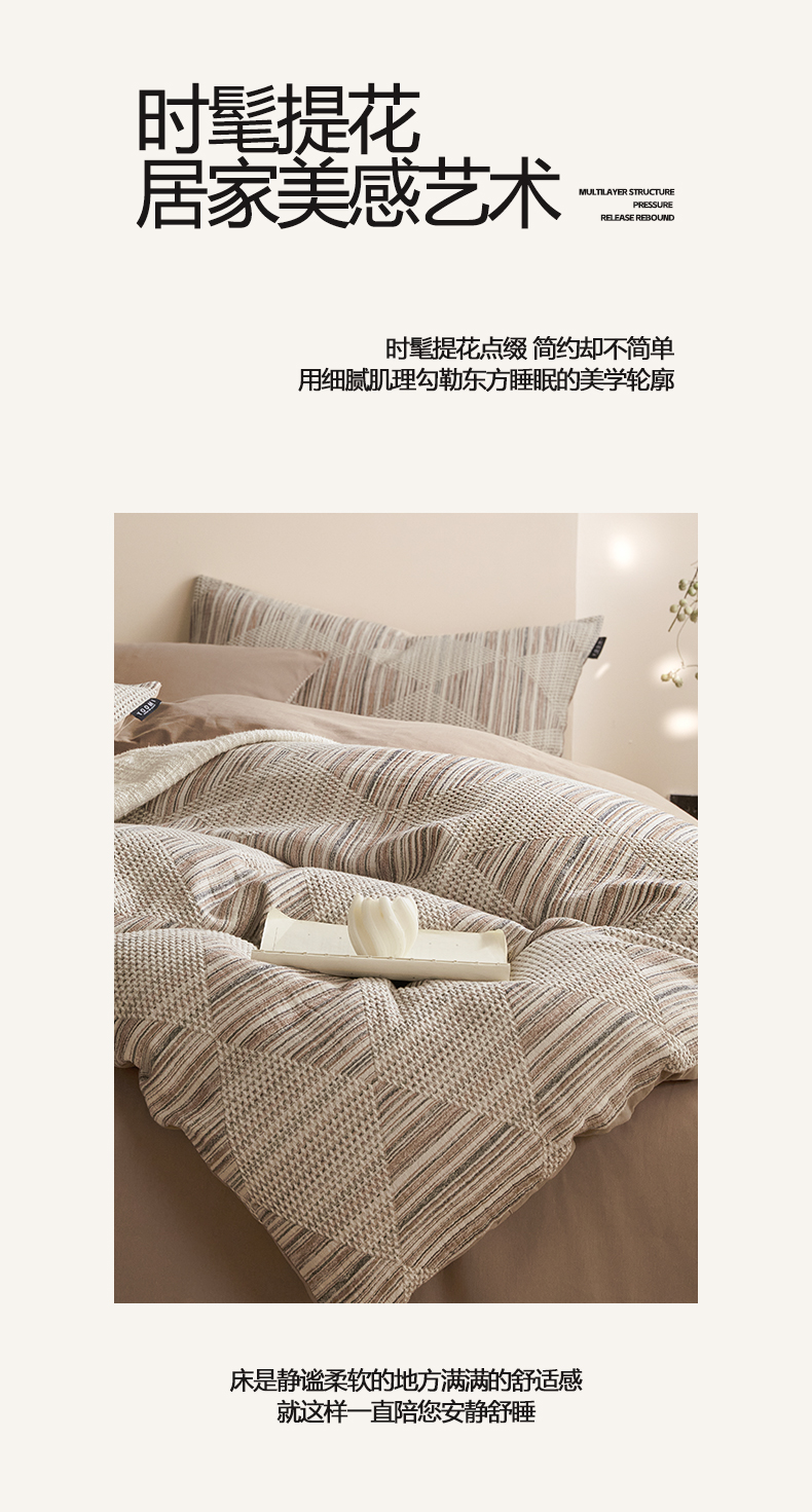 商品名称:涵宸家纺 2025新款简约款全棉磨毛提花四件套-未眠 兰卡威-咖