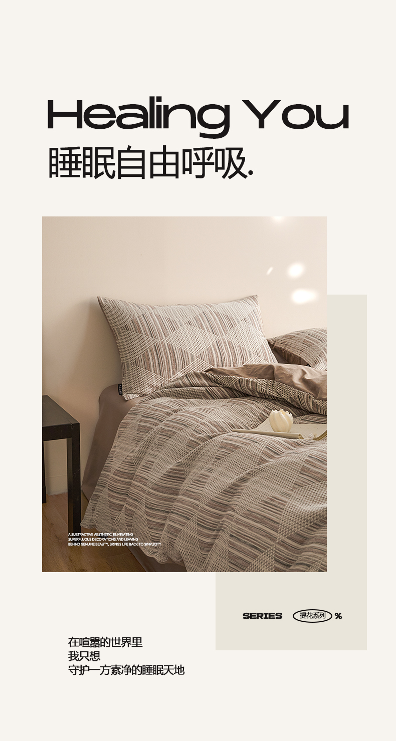 (总)涵宸家纺 2026新款全棉提花里拉系列四件套,柏拉-白,花夕-粉,凌维-灰,凌维-绿,律动格韵,千喜格,沁语-粉金,沁语-奶白,沁语-紫,山慕色,甜心漾,微芒,雾絮-灰,雾絮-奶白,毓影-豆沙,毓影-奶白,云暖-粉,云暖-紫,织羽