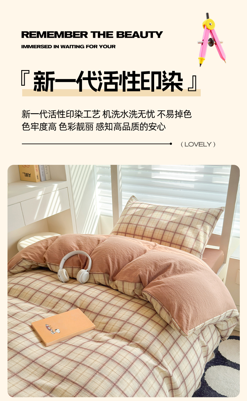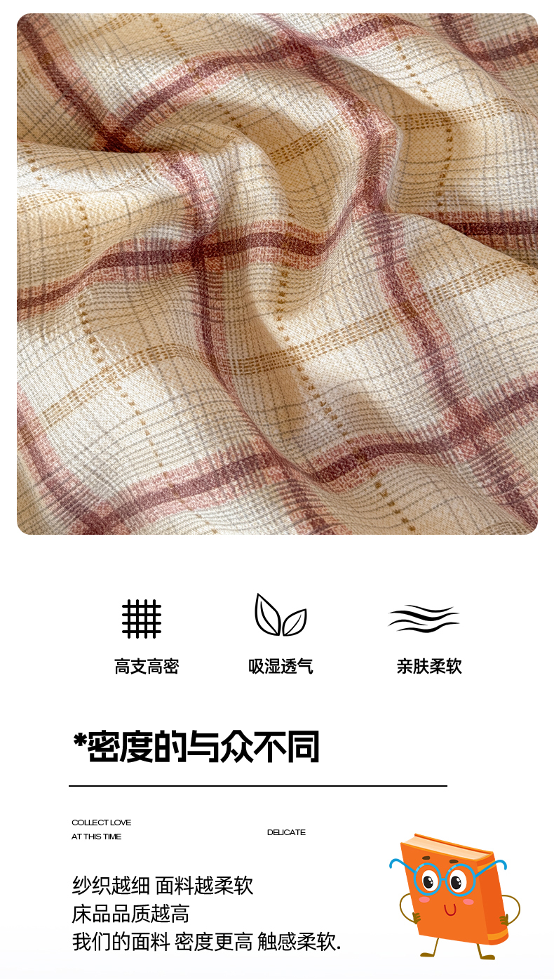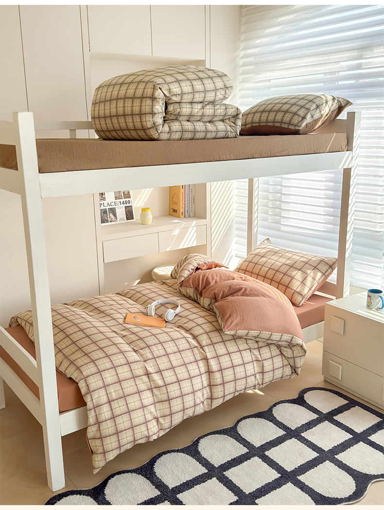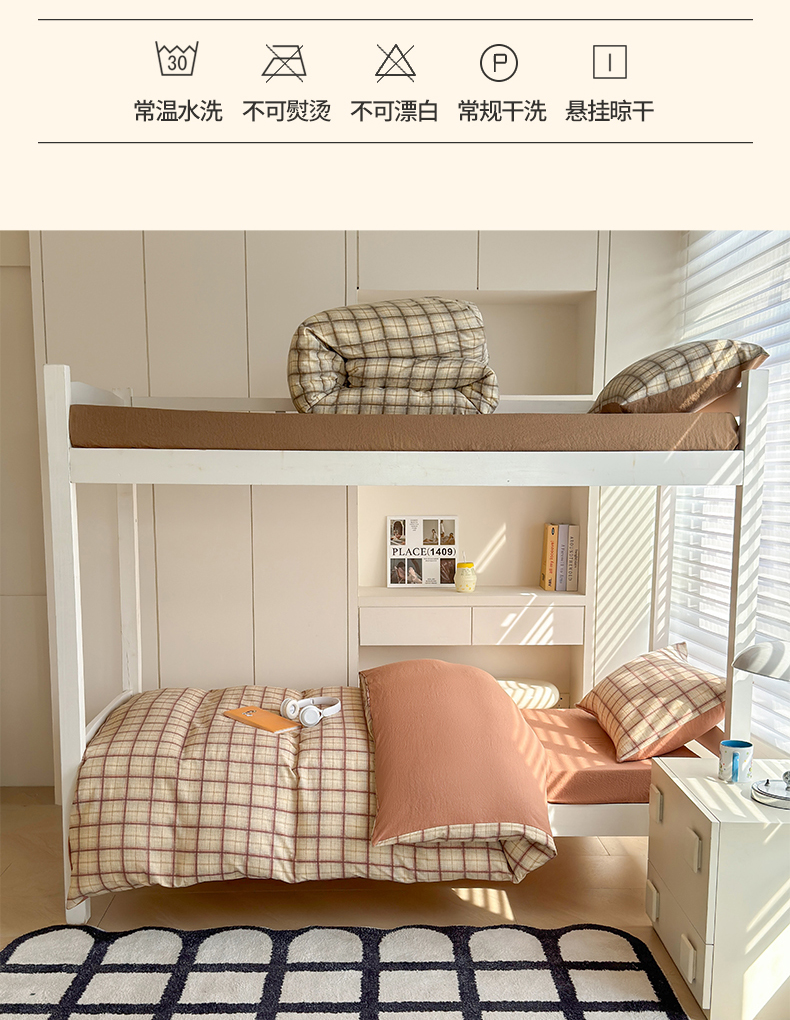 (总)雨田家纺 2025新款A类汉麻双层纱学生宿舍三件套上下铺三件套,初春,格韵-咖,快乐时光,紫韵